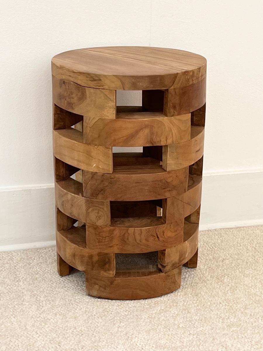 Teak Block Design Side Table/Accent Stool
