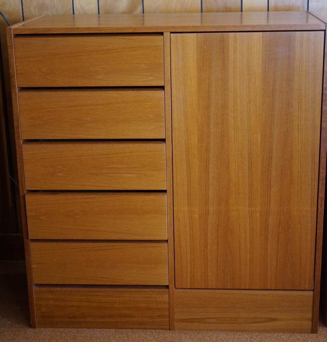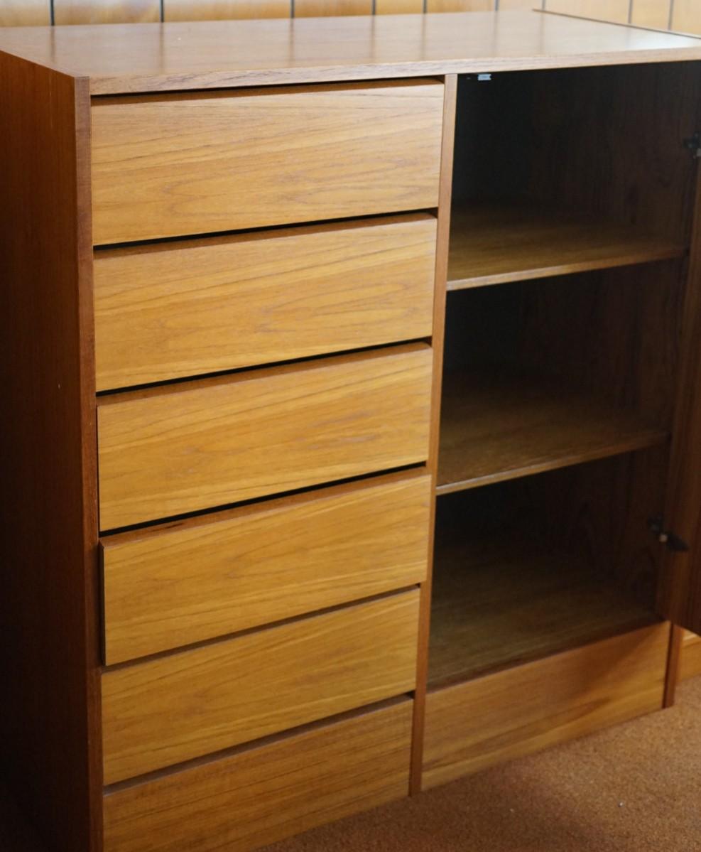 teak chifferobe. six drawers and door to disclose shelves