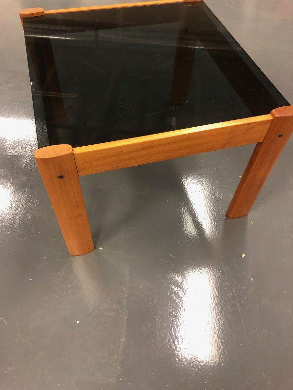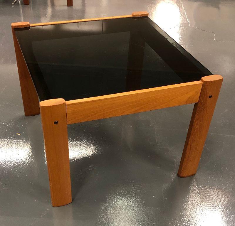 Teak Danish Modern Smoked glass end Table