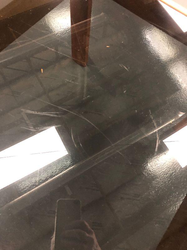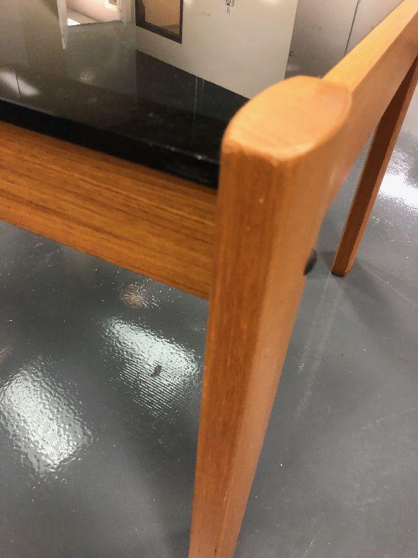 29 x 29 x 21 high Solid teak good condition scratch in glass