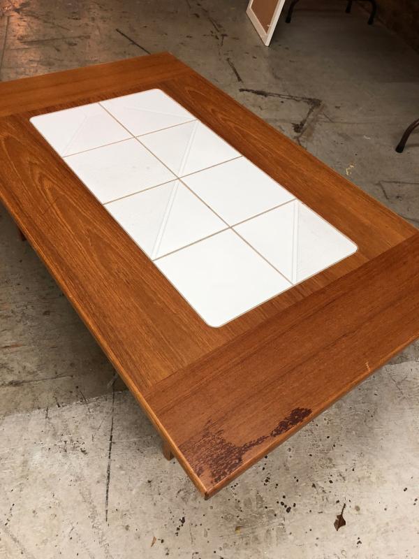 Teak Tile Top Coffee Table Danish Modern 1980's