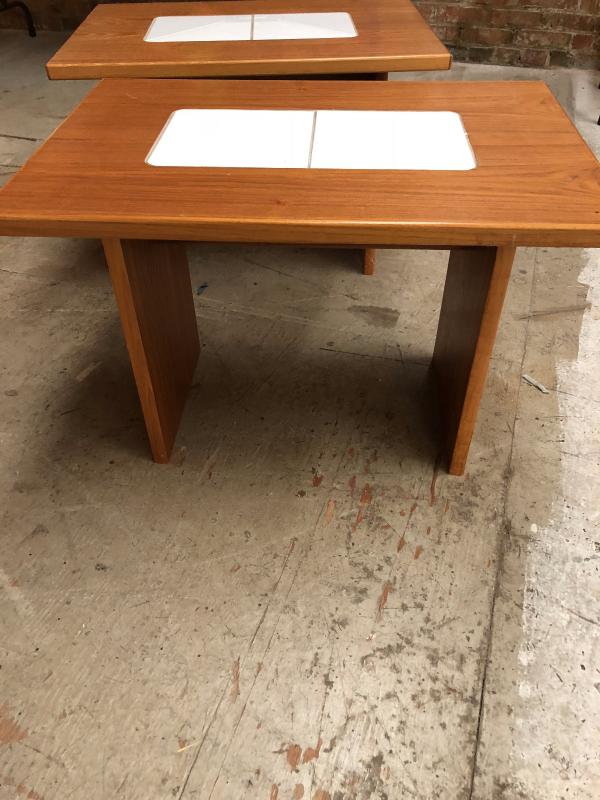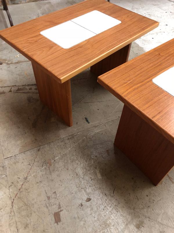 Teak Tile Top End Table Pair, Danish Modern 1980's