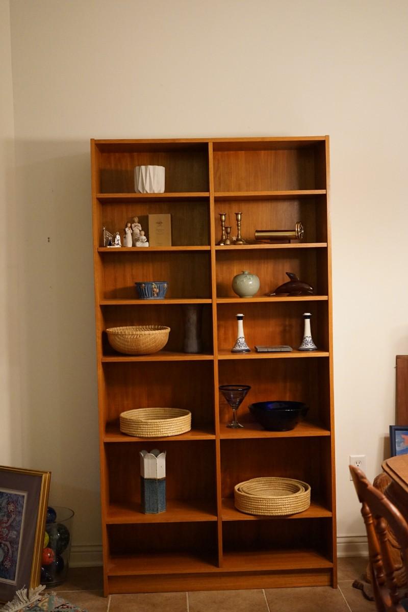 TEAK WALL SHELF UNIT OF TWELVE SHELVES