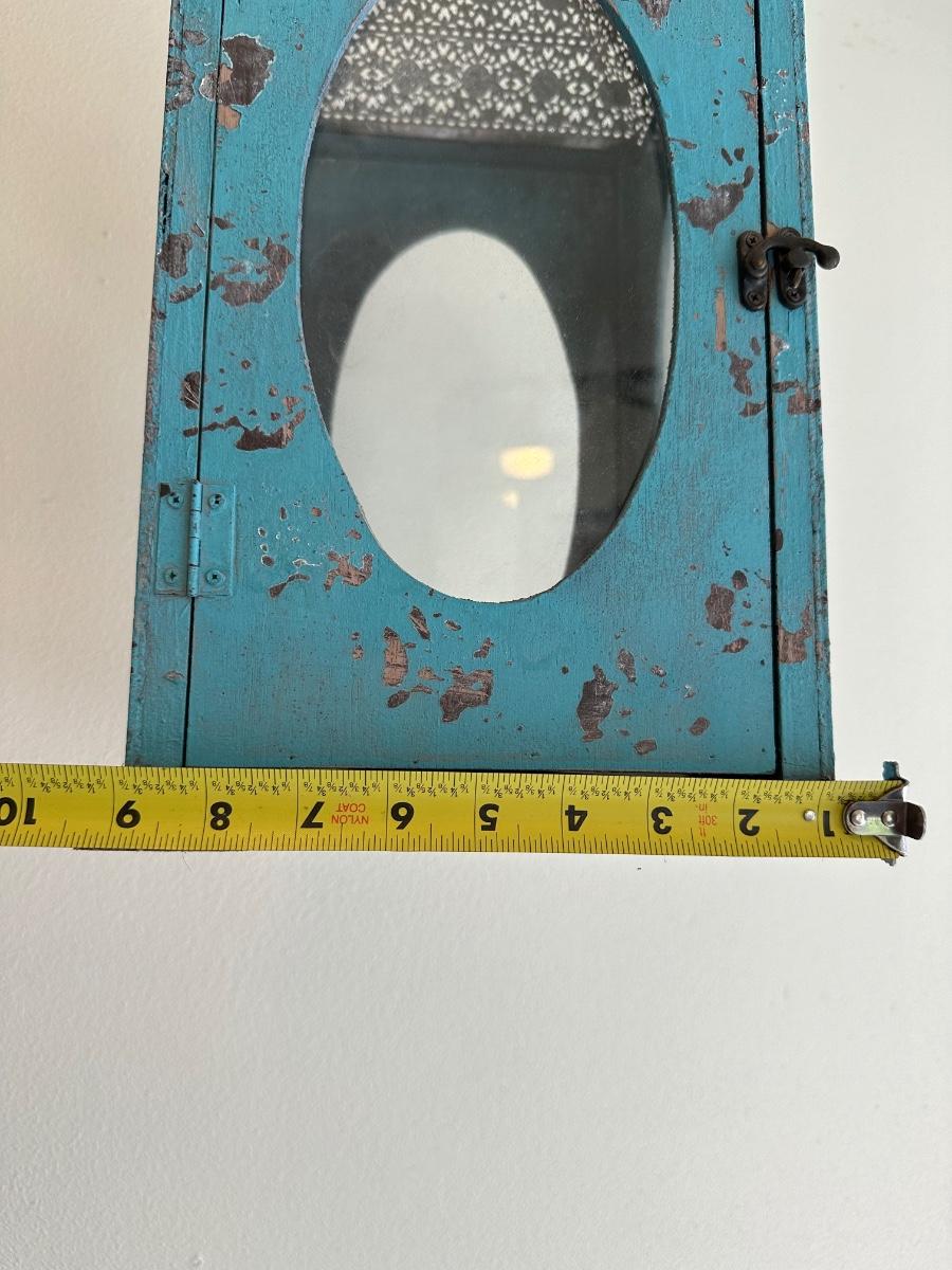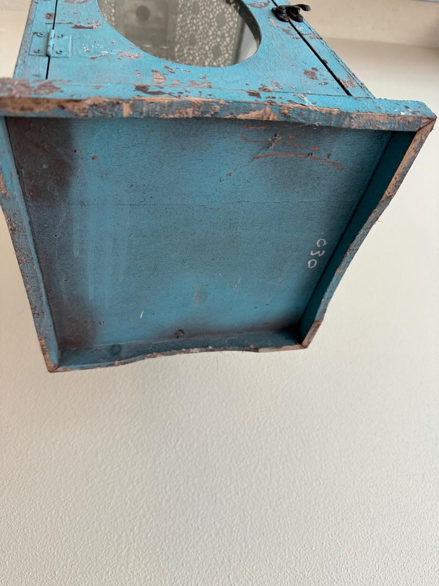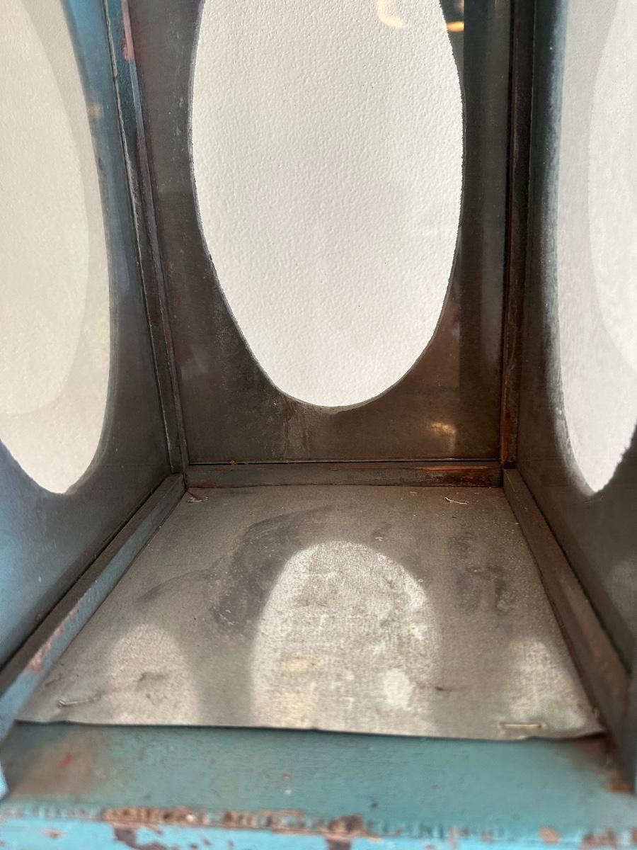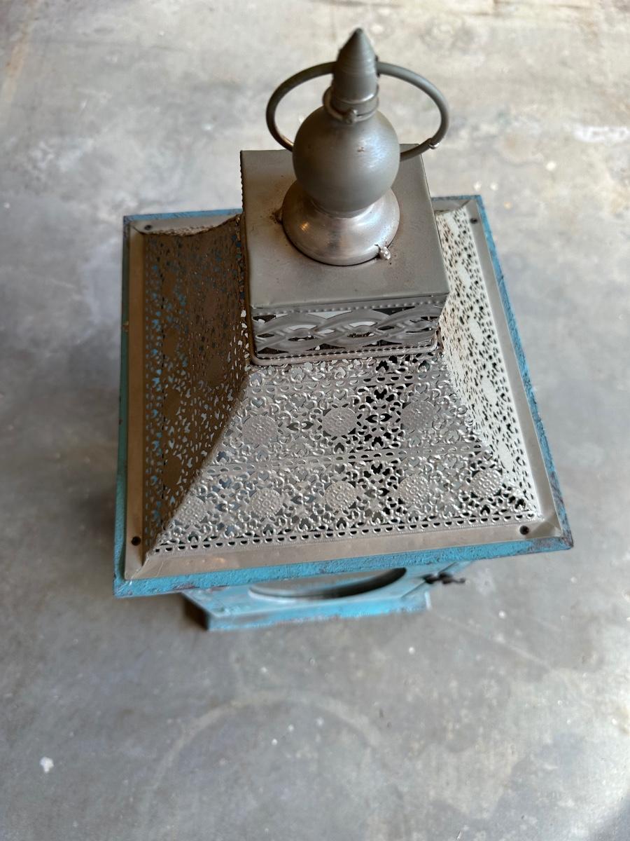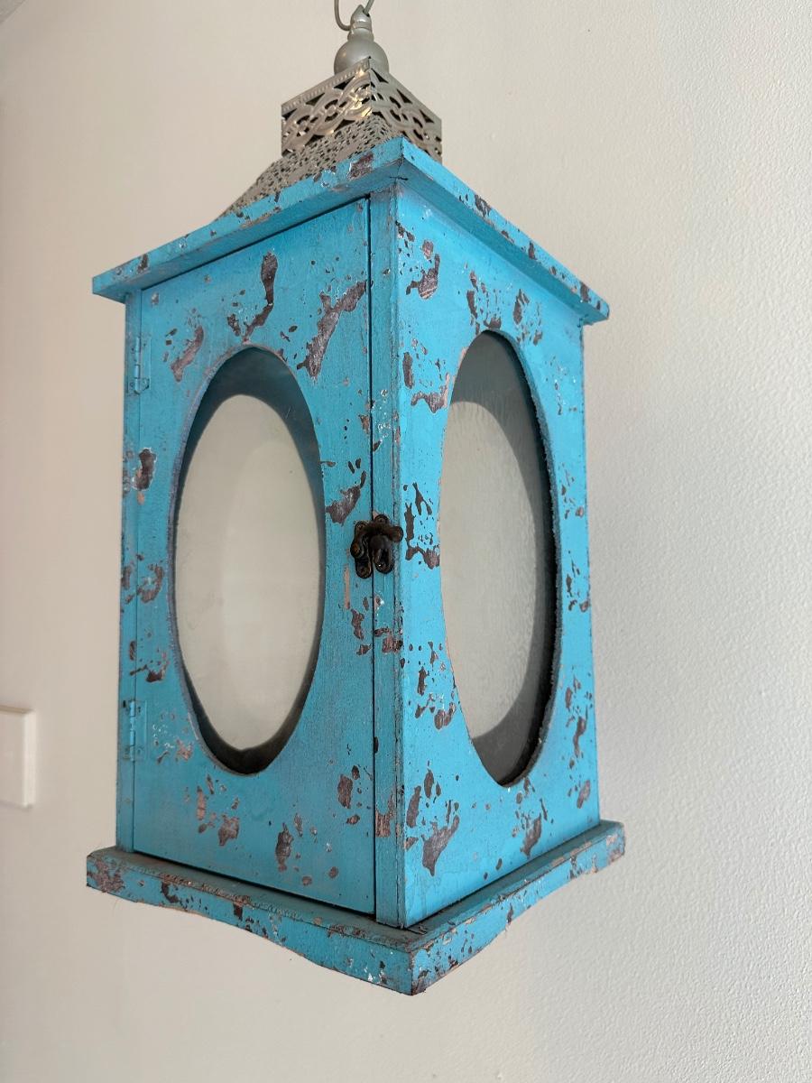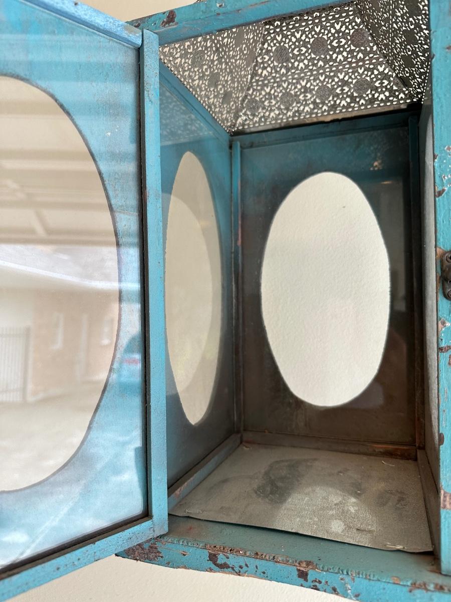Large Teal Blue Wood & Metal Lantern Terrarium with Glass Windows