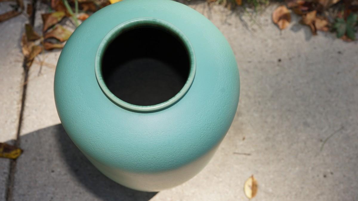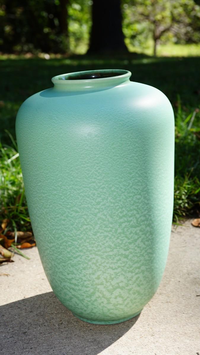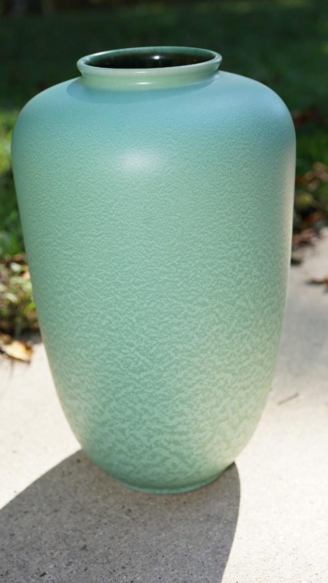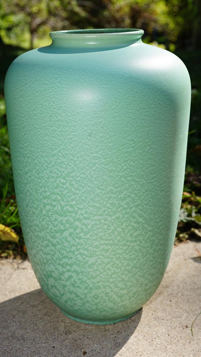 TEAL GREEN 16" VASE OF MOTTLED MATT GLAZE- UNSIGNED