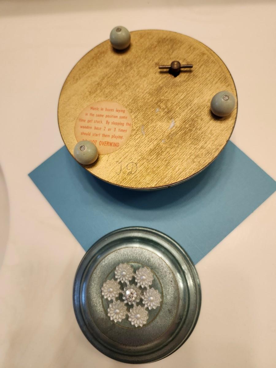 Unbranded vintage Silvertone Powder Puff – Trinket Box- Music Box (wind up)