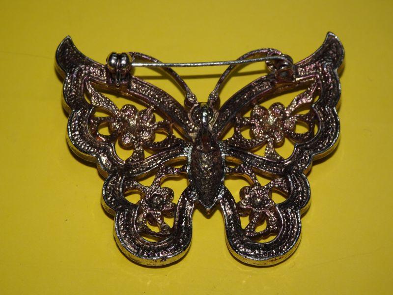 Teal & Pink Beaded Victorian Style Butterfly Brooch - Amazing~
