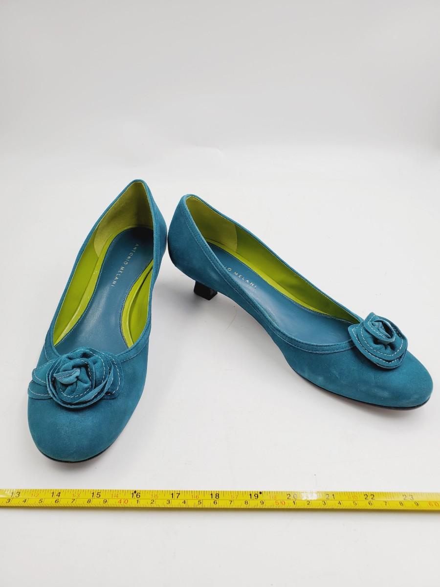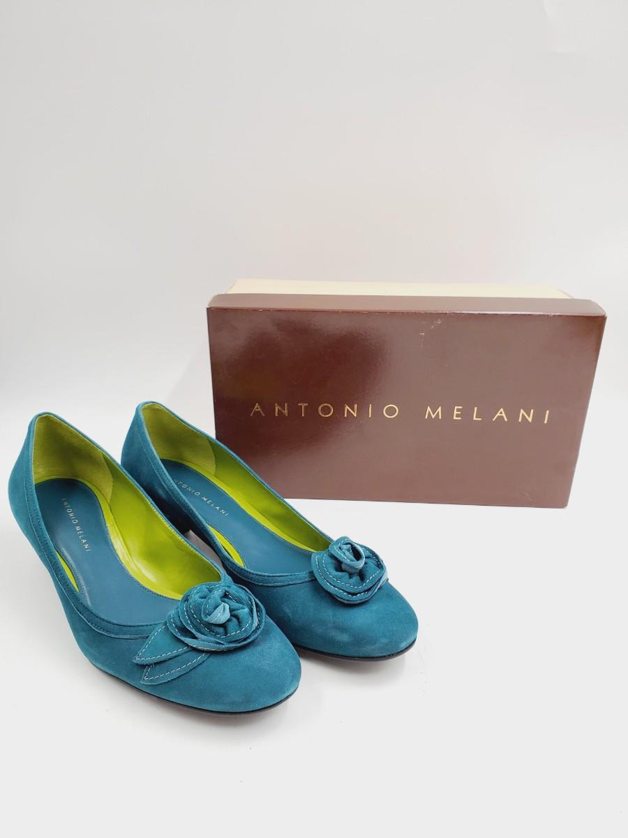 TEAL ROSETTE ANTONIO MELANI SIZE 10M PUMPS WITH BOX