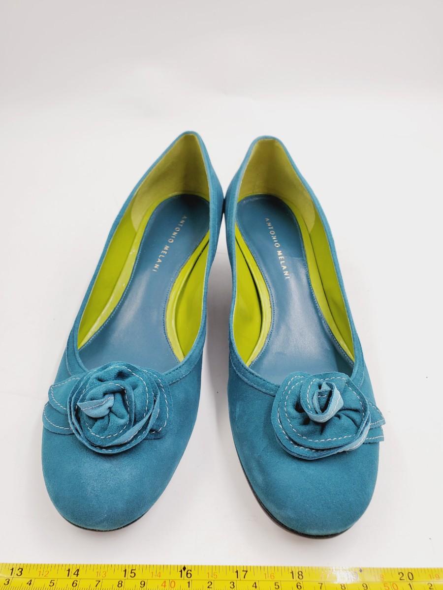Super adorable teal rosette Antonio Melani size 10M pumps, good condition, box included..