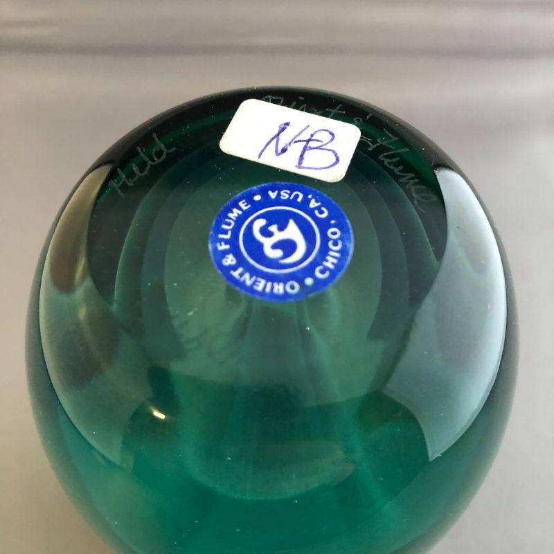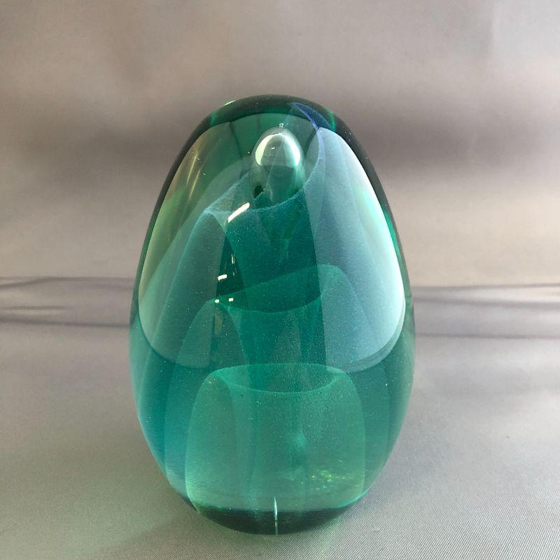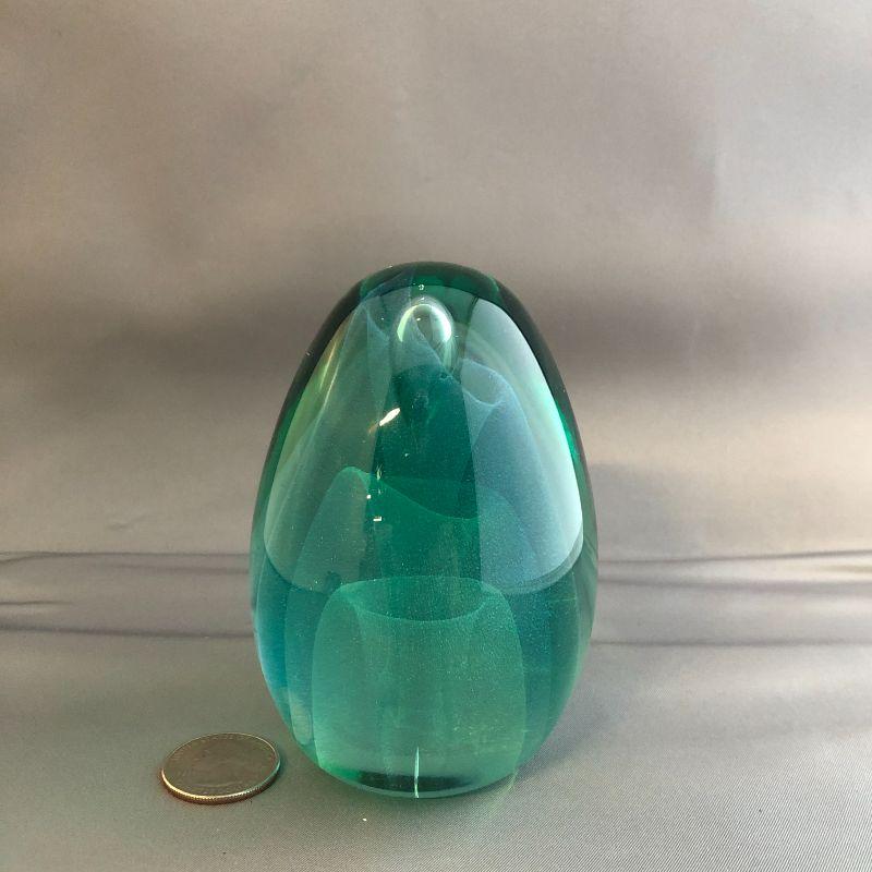 Teal Vortex illuminator paperweight - signed Orient & Flume, Held, H0991J1