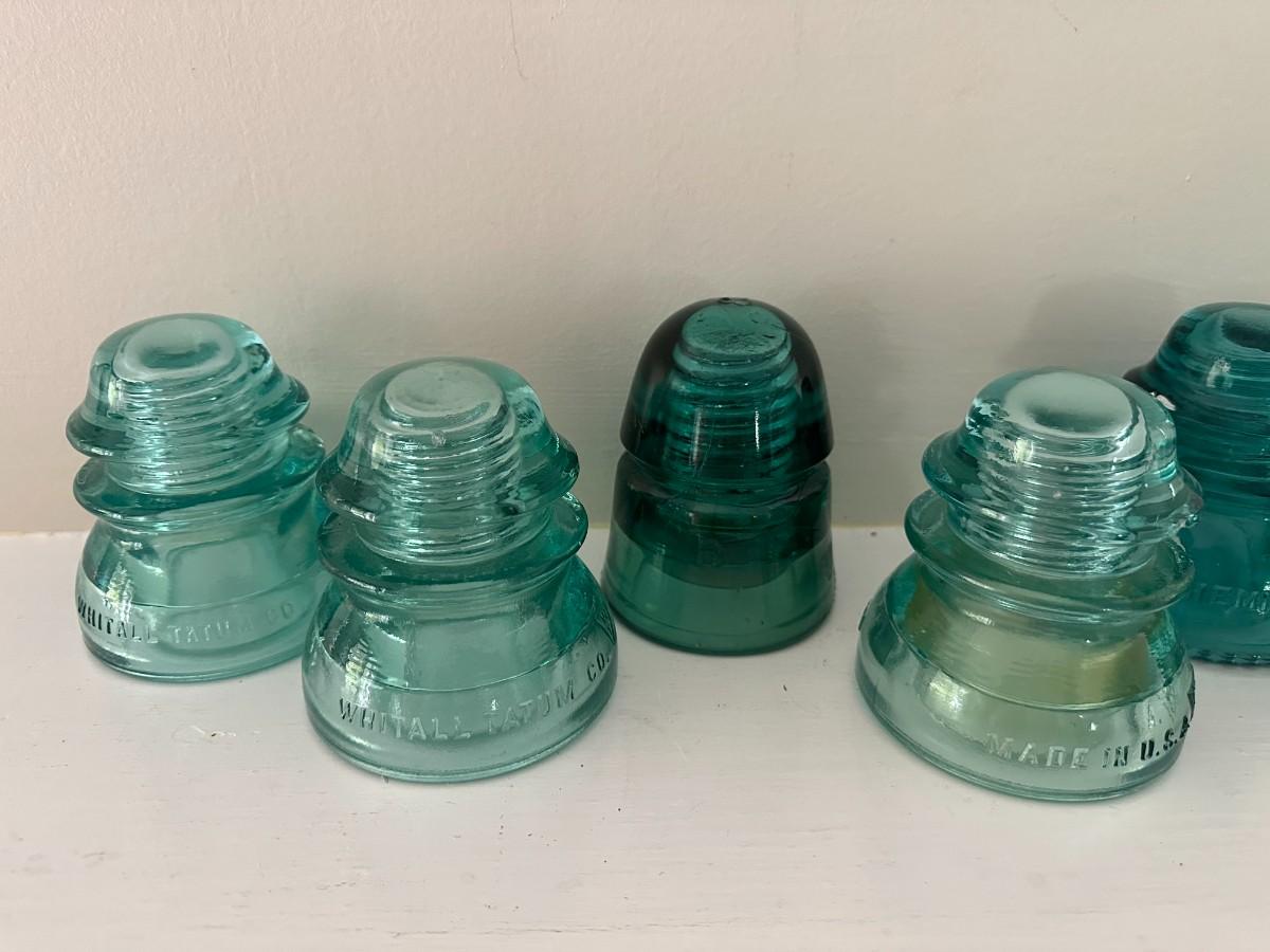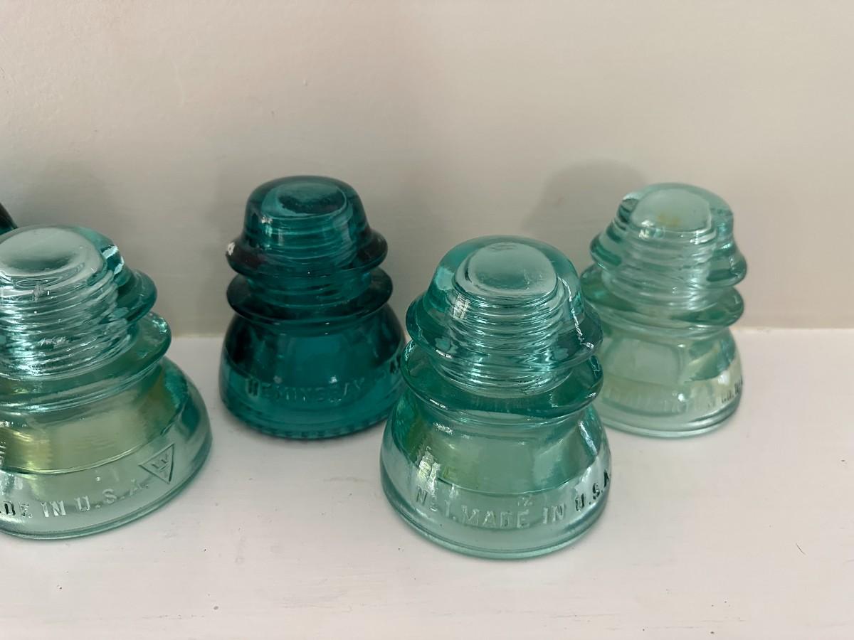 7 Teal/Aqua Blue Glass Telephone Insulators