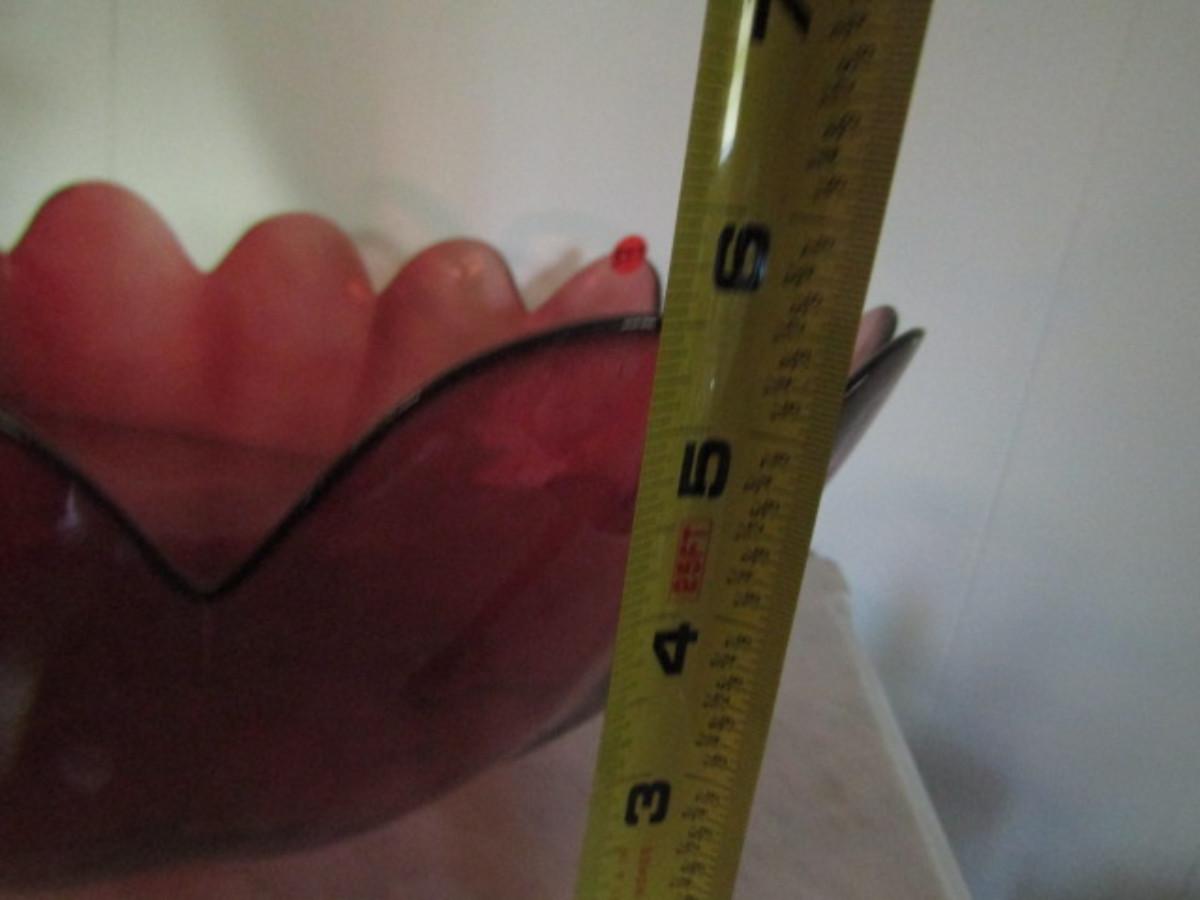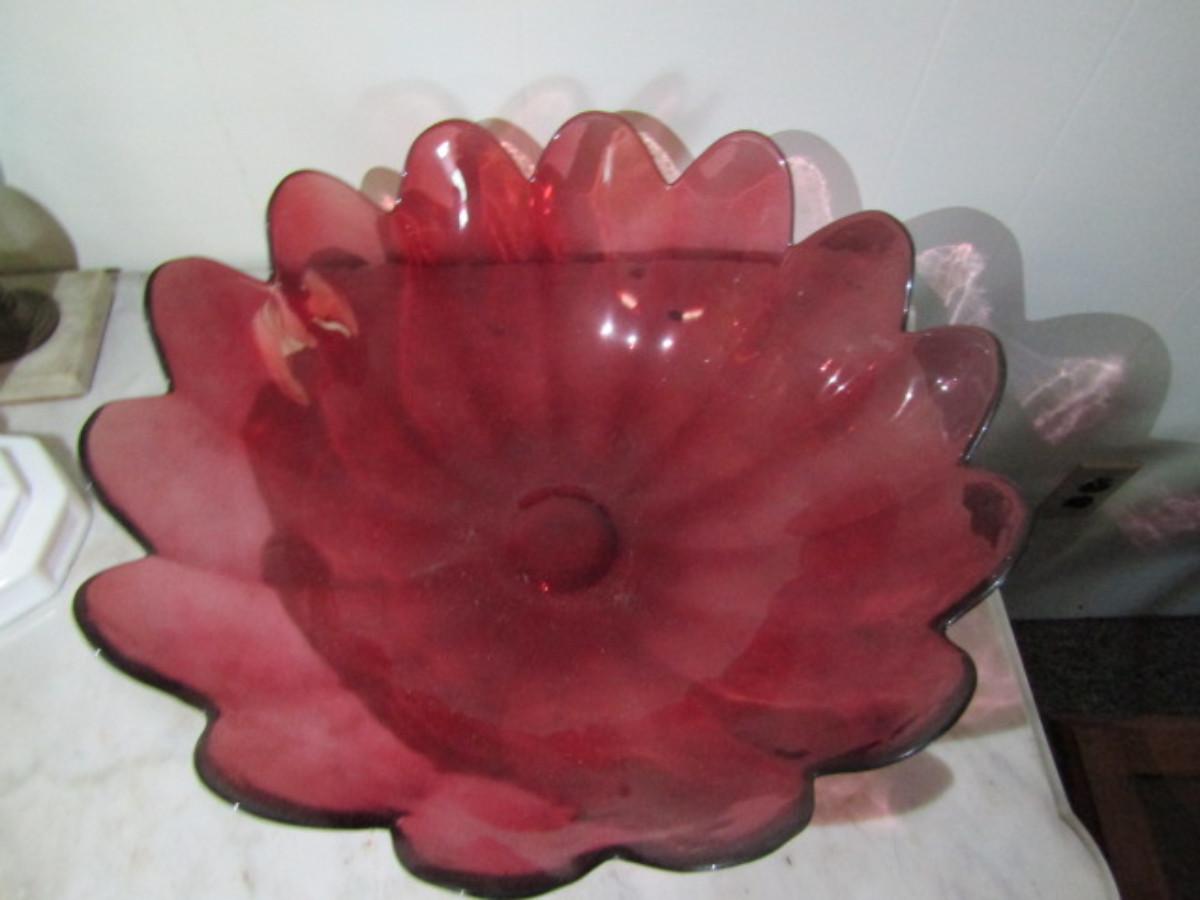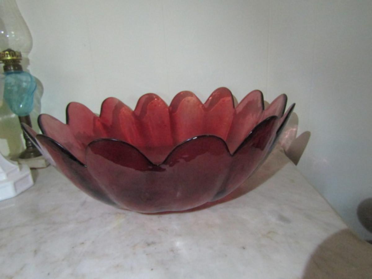 Cranberry Glass Bowl- Petal Shaped Edge-Approx 15" in Diameter (#377)