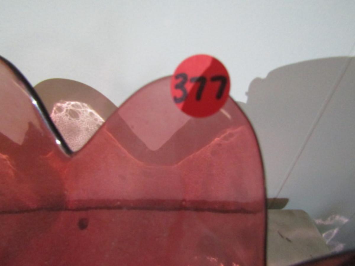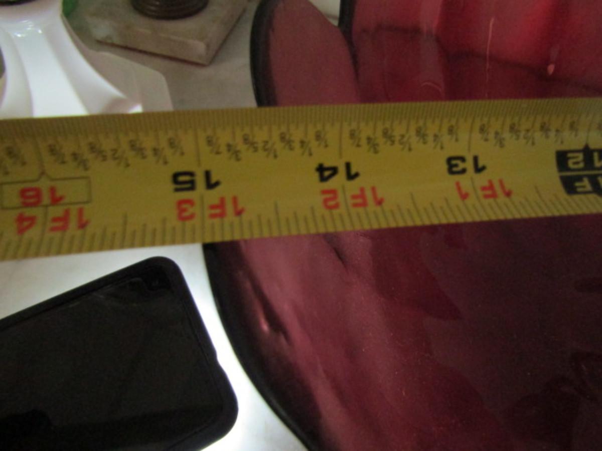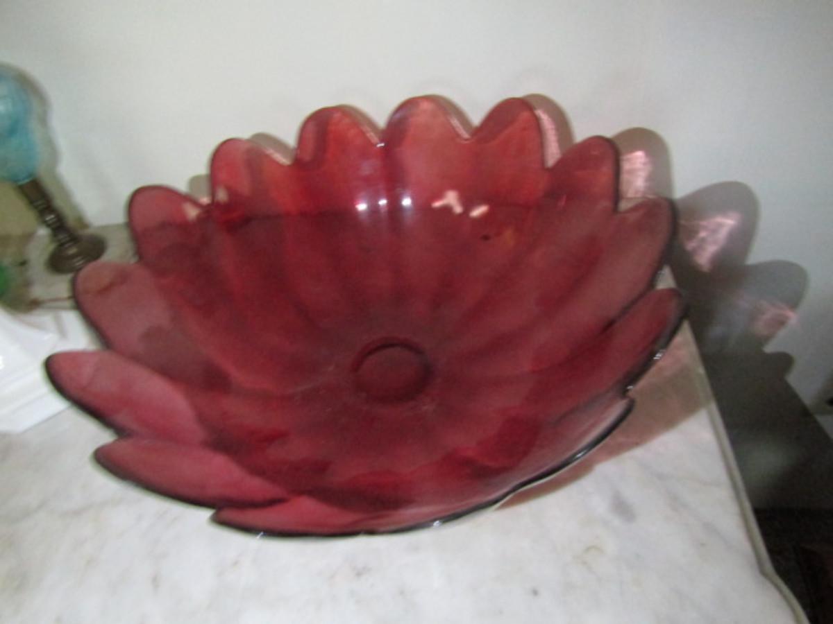 Cranberry Glass Bowl- Petal Shaped Edge-Approx 15" in Diameter (#377)
