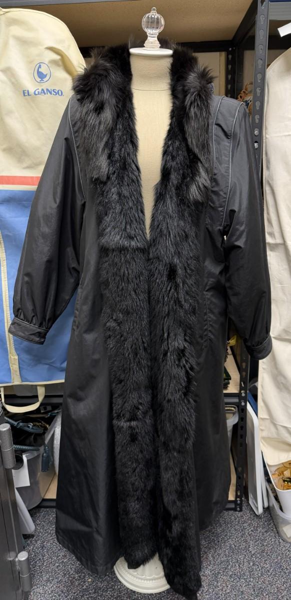 Photo 2 shows the coat reversed, with the vest and quilted sleeves. It also shows the lining as it could be detached (buttons) and worn as a long statement vest. Ankle length. Size ~ Medium. Reversible. Fox Collar. Excellent condition, looks new, one previous owner.