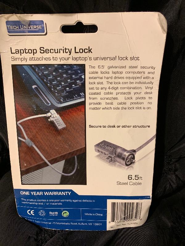 Tech Universe Laptop Security Lock with 6.5 ft Steel Cable (Box is a mess) - NEW