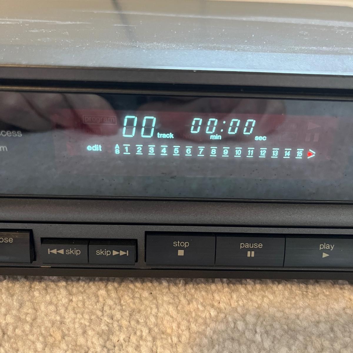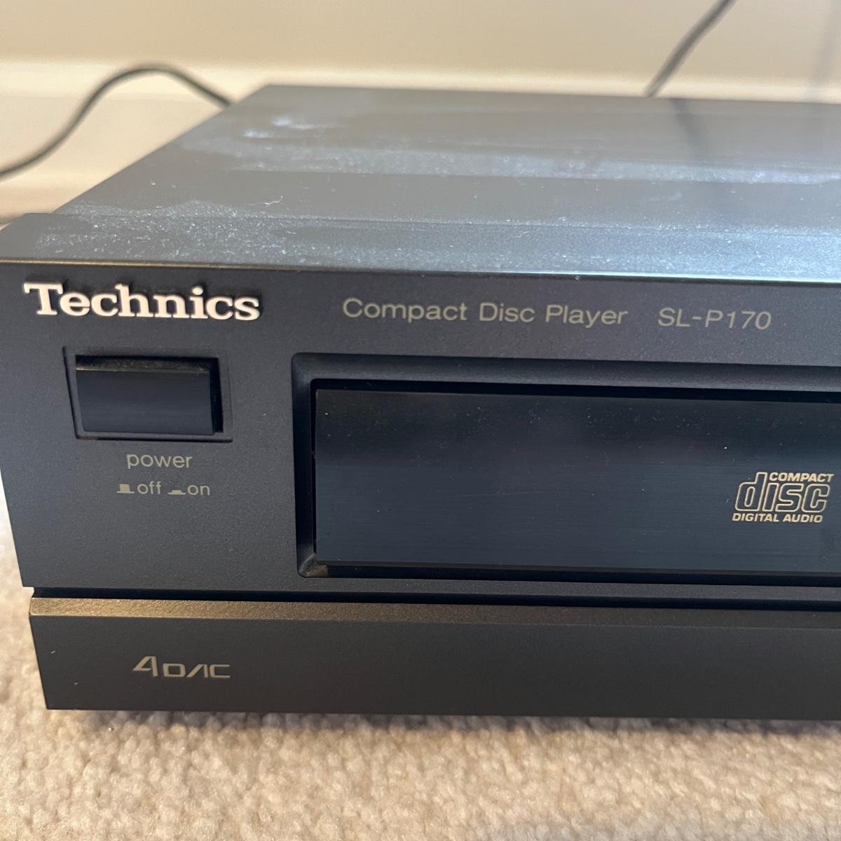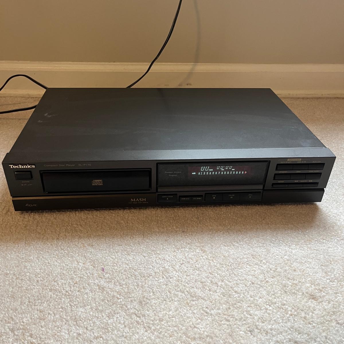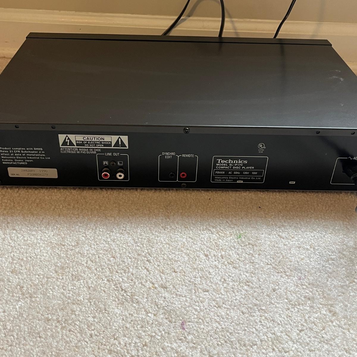 Lot includes a Technics CD player that powered on when plugged in. Player measures 17.5 x 10” x 3.5”H.