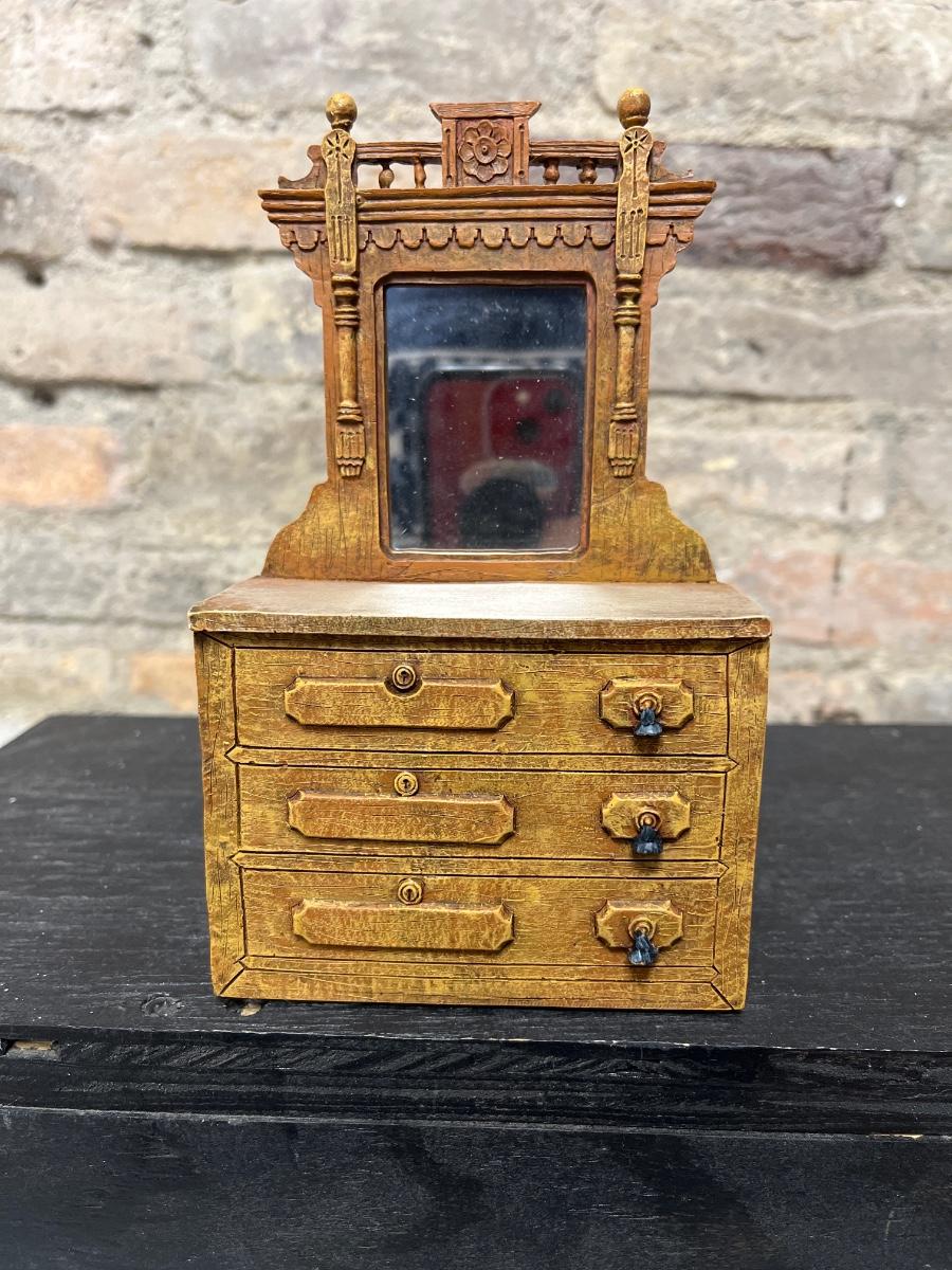 From the Hats for Teddy series, Dresser with Mirror, Three Hat Stands & Chair