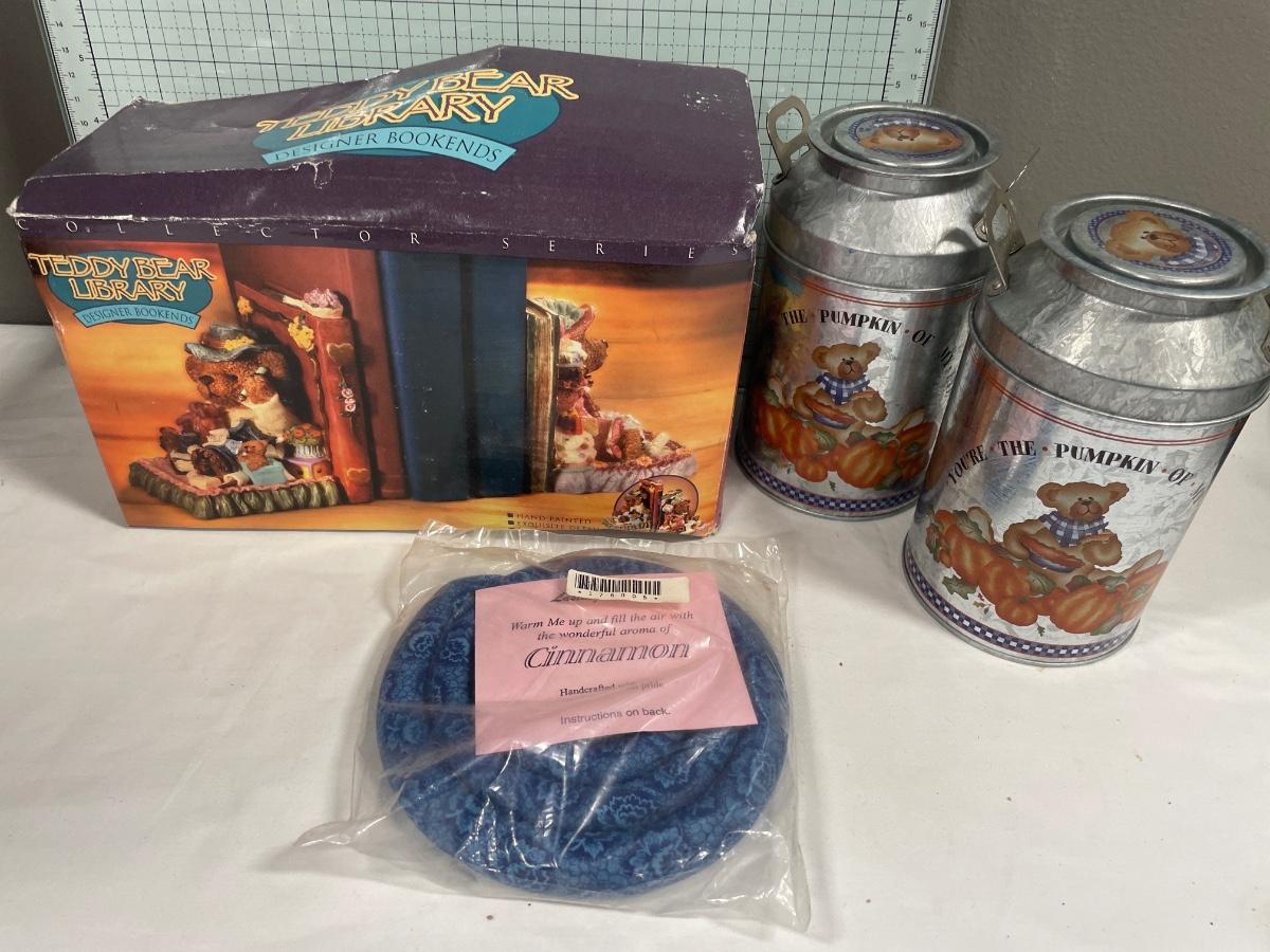 Teddy Bear bookends, canisters and Cinnamon warmer