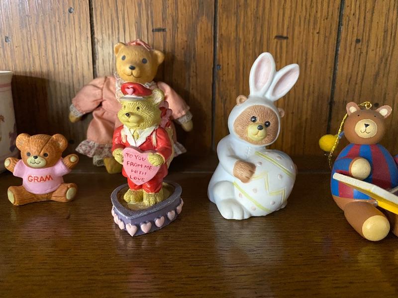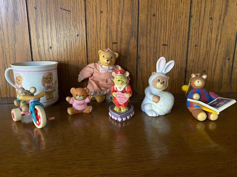 Lot of Teddy Bear figurines, ornaments, and collector cup. Good condition. Everything photo’d included.
