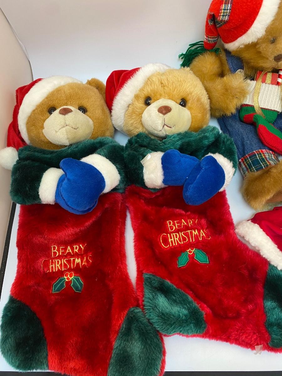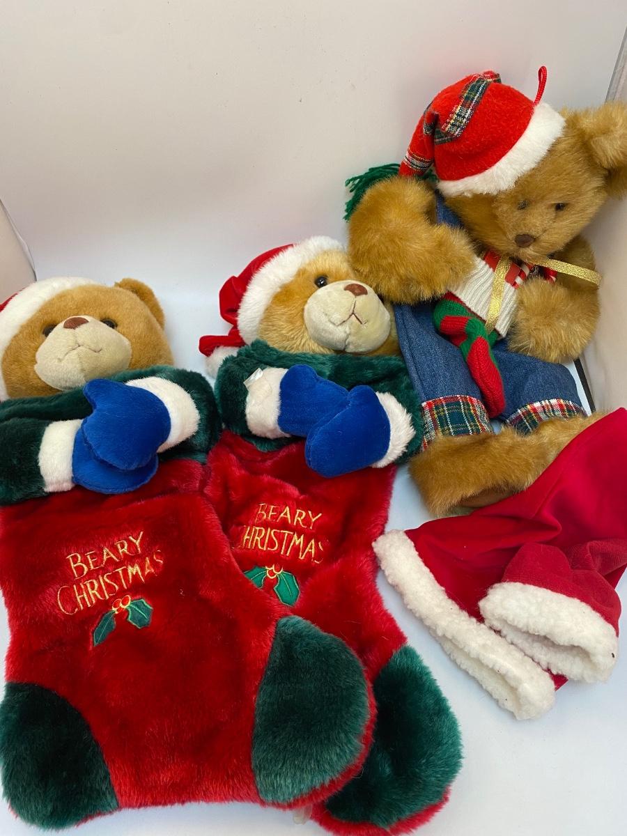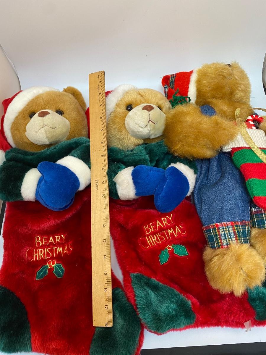 Teddy Bear Plush Christmas Holiday Stockings. Good condition.