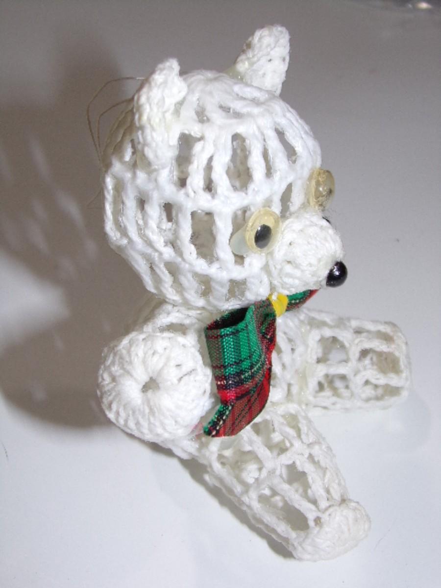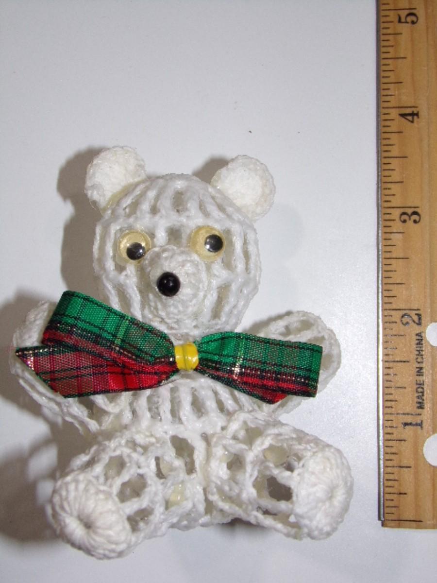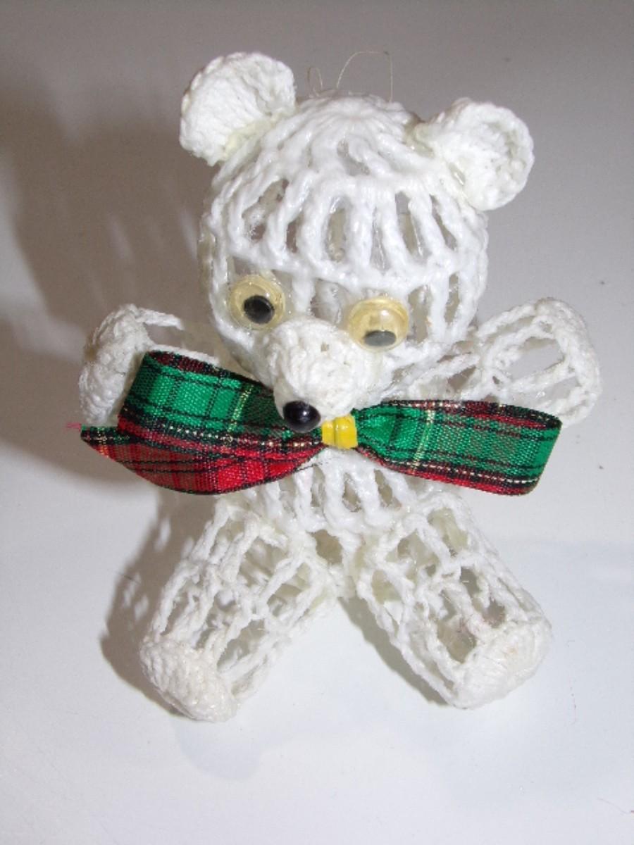 Hand crafted crocheted & starched Teddy Bear tree ornament