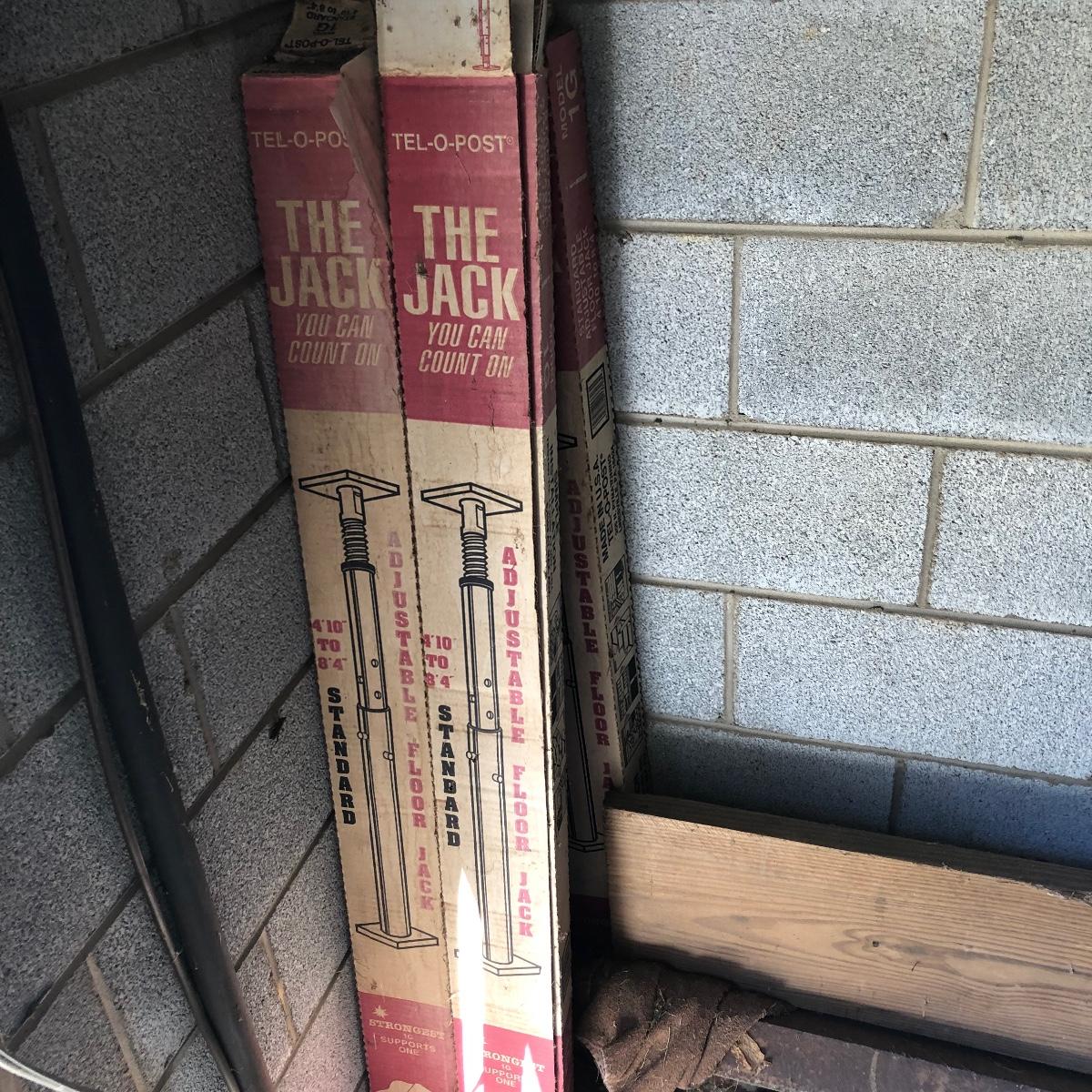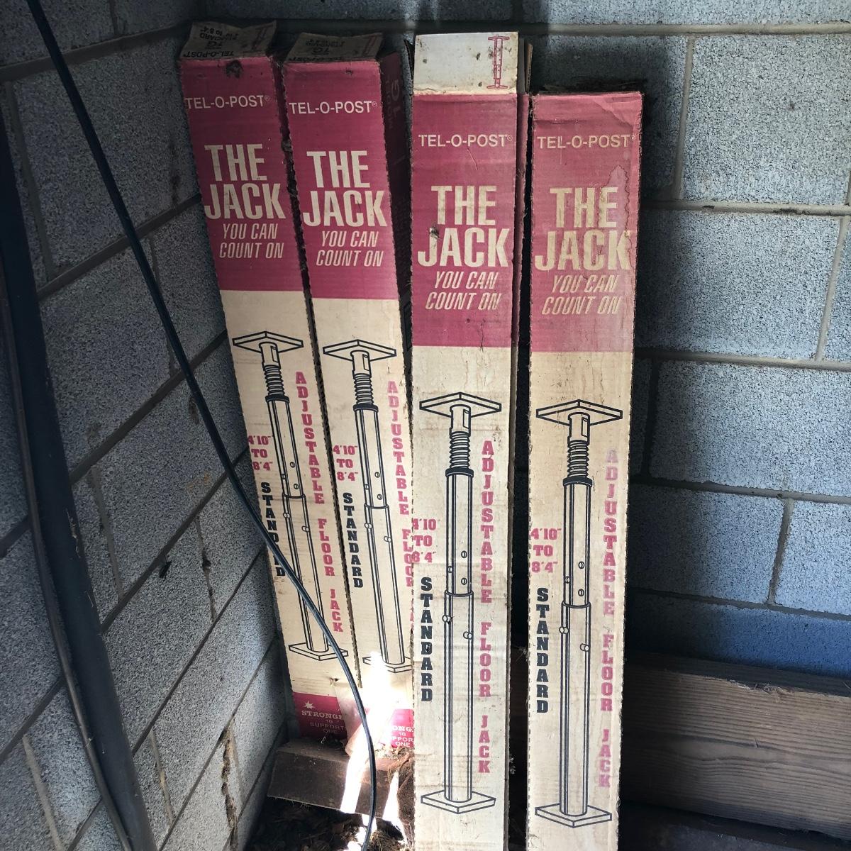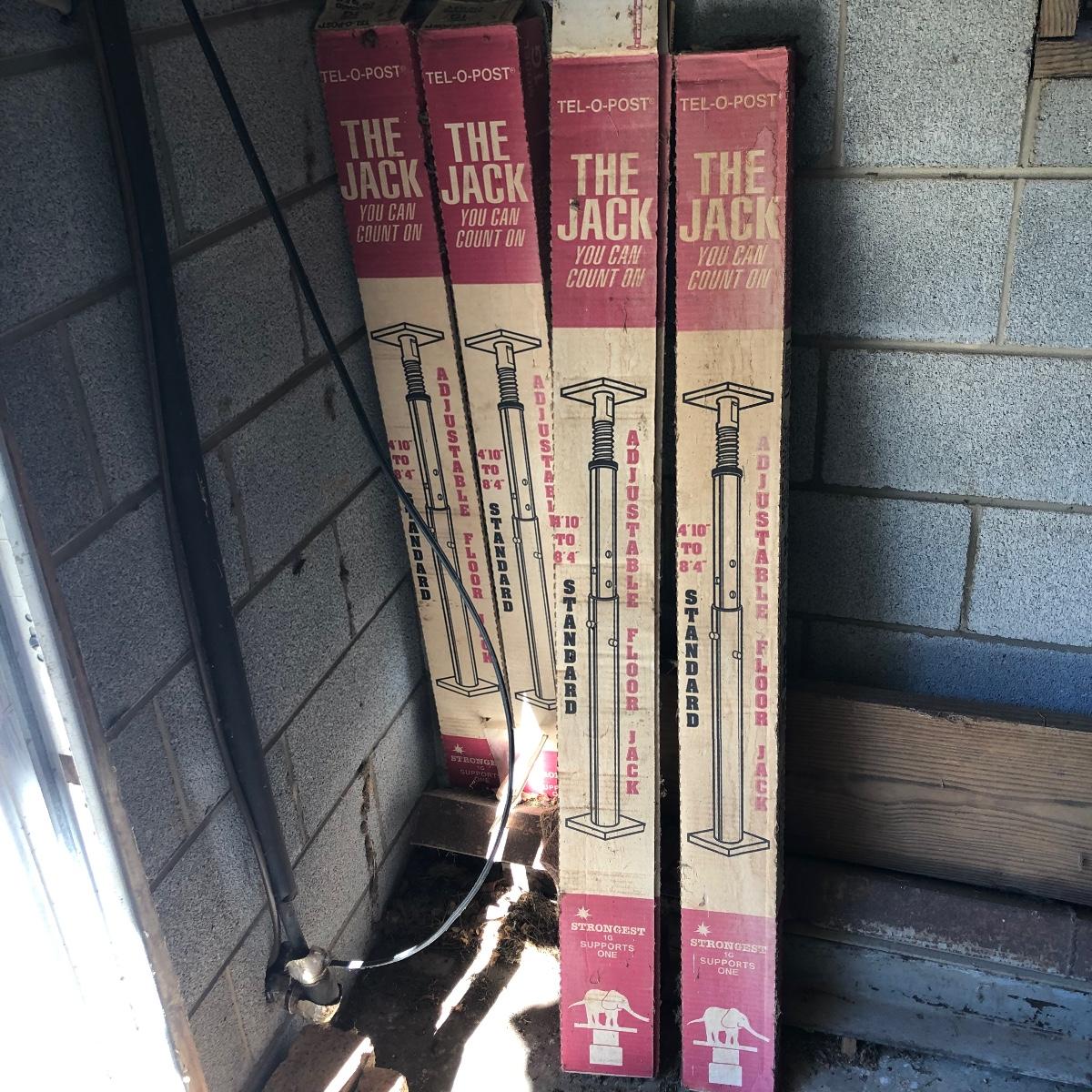 Lot includes four Tel O Post adjustable floor jacks that adjust from 58” - 100”.