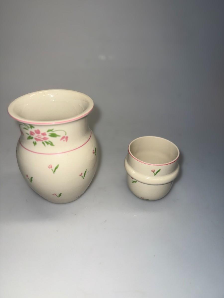 Teleflora Tumble Up Bedside Water Carafe Tumbler Set Ceramic Pink Tulips 1985