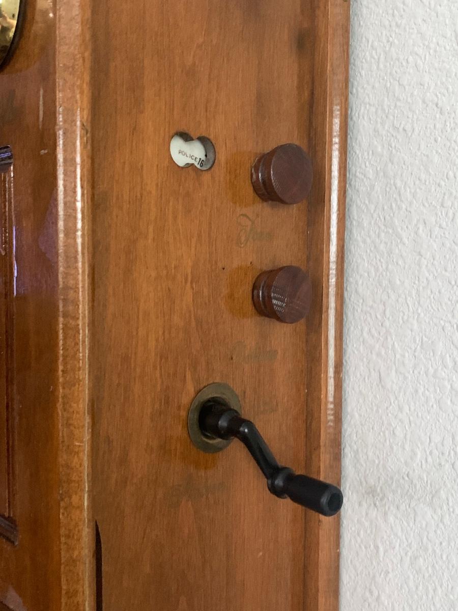UNITED STATES - CIRCA 1950s: Old fashioned double bell, crank style telephone, with separate receiver and mouthpiece. Please note phone is broken would be great for decor or use for parts pretty cool piece.