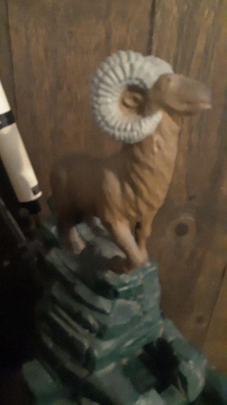 CSU RAMS LOOK ALIKE WATER FOUNTAIN. IT IS MADE OF CONCRETE. IT DOES NOT HAVE A PUMP