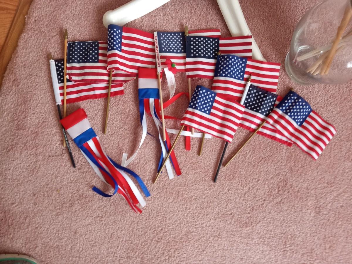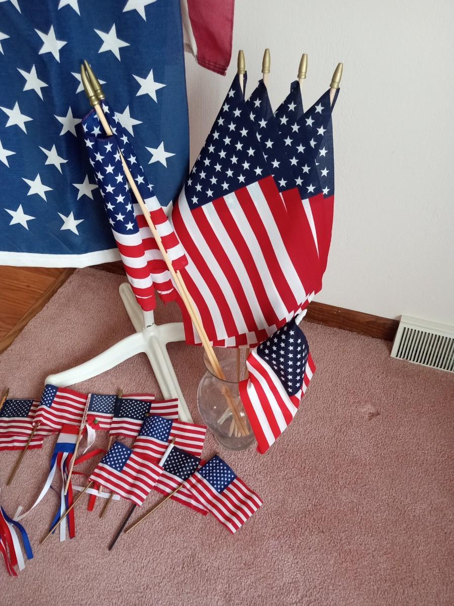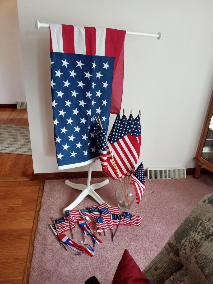 TELESCOPING FLAG POLE WITH LED LIGHTS AND US FLAGS