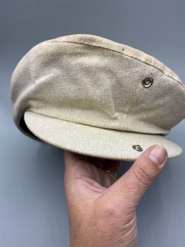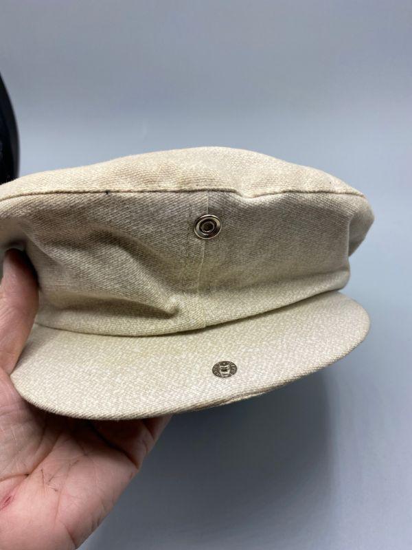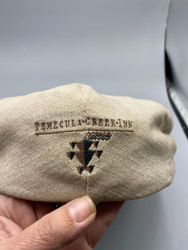 Beige Temecula Creek Inn paperboy style golf hat. Previously worn, needs to be cleaned. Brim has snap. Does not have a size.