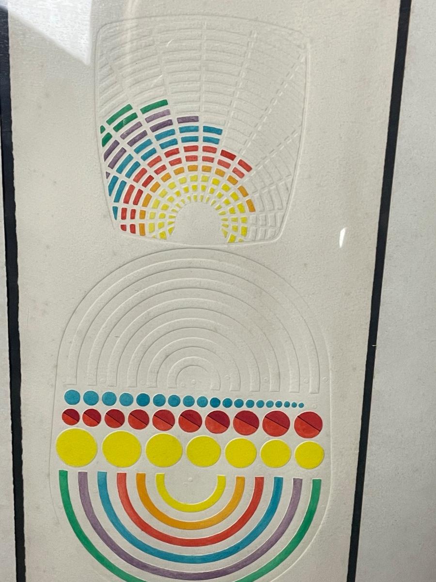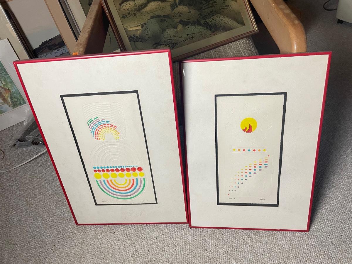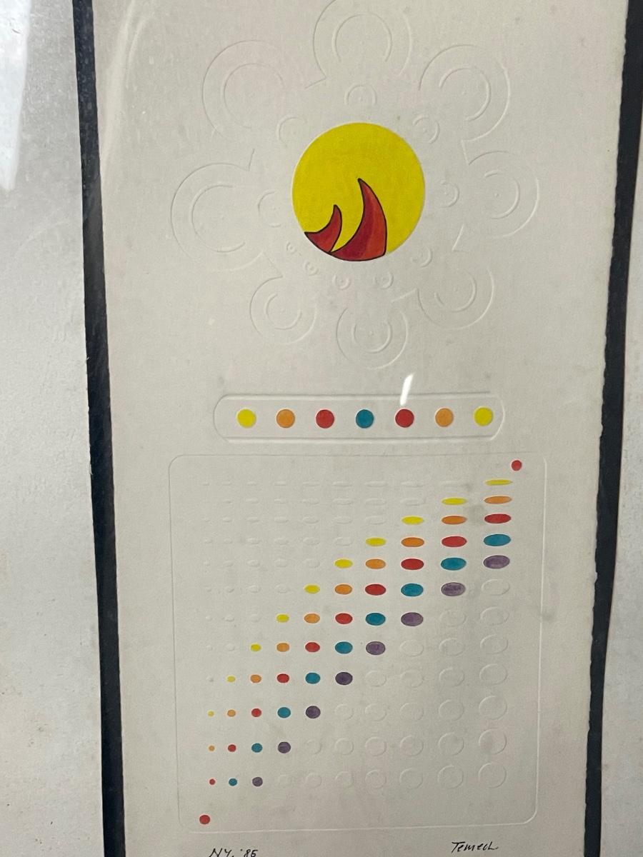 Temeel Artist Signed NYC rainbows Embossed Art - set of two, framed.