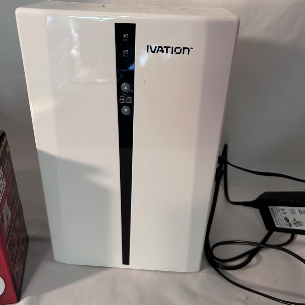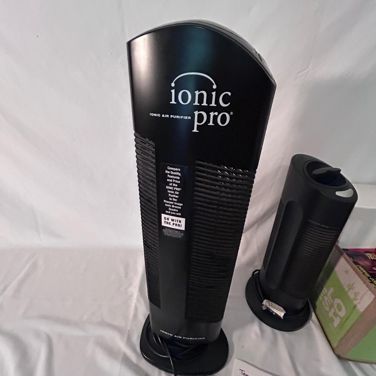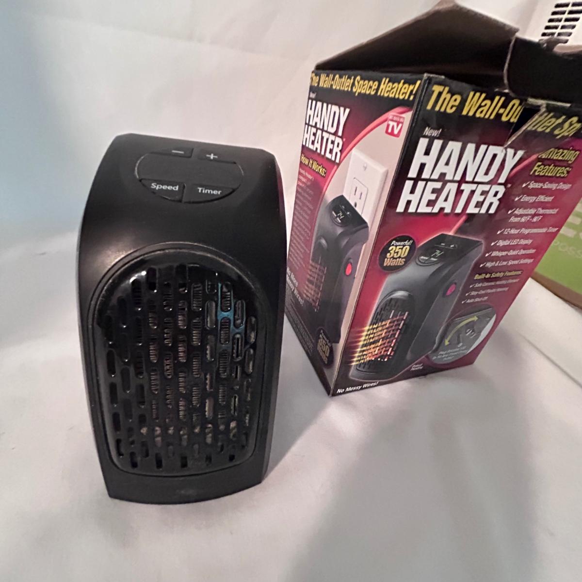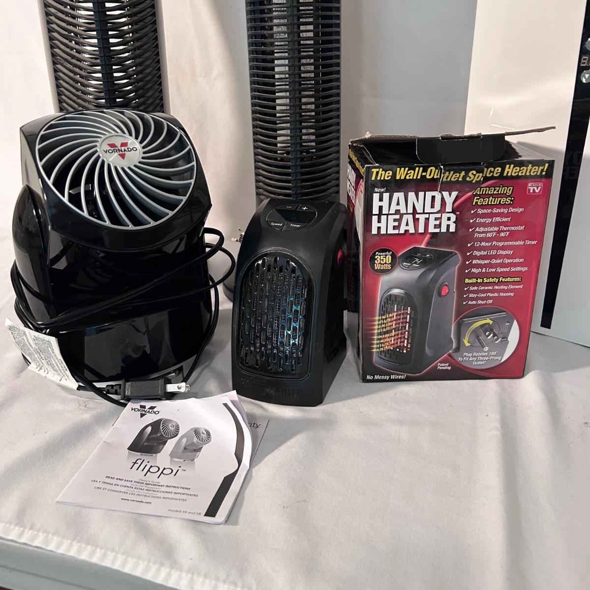 Five electronic air purifiers, fans, heater and dehumidifier all powered on when tested. The two air purifiers need a good cleaning and the tallest stands 27.5” tall. The heater is a small outlet based piece and the fan is desk size with multi angle. The dehumidifier is a smaller version of the normal size measuring 9”x7”x14”. Local pick up only.