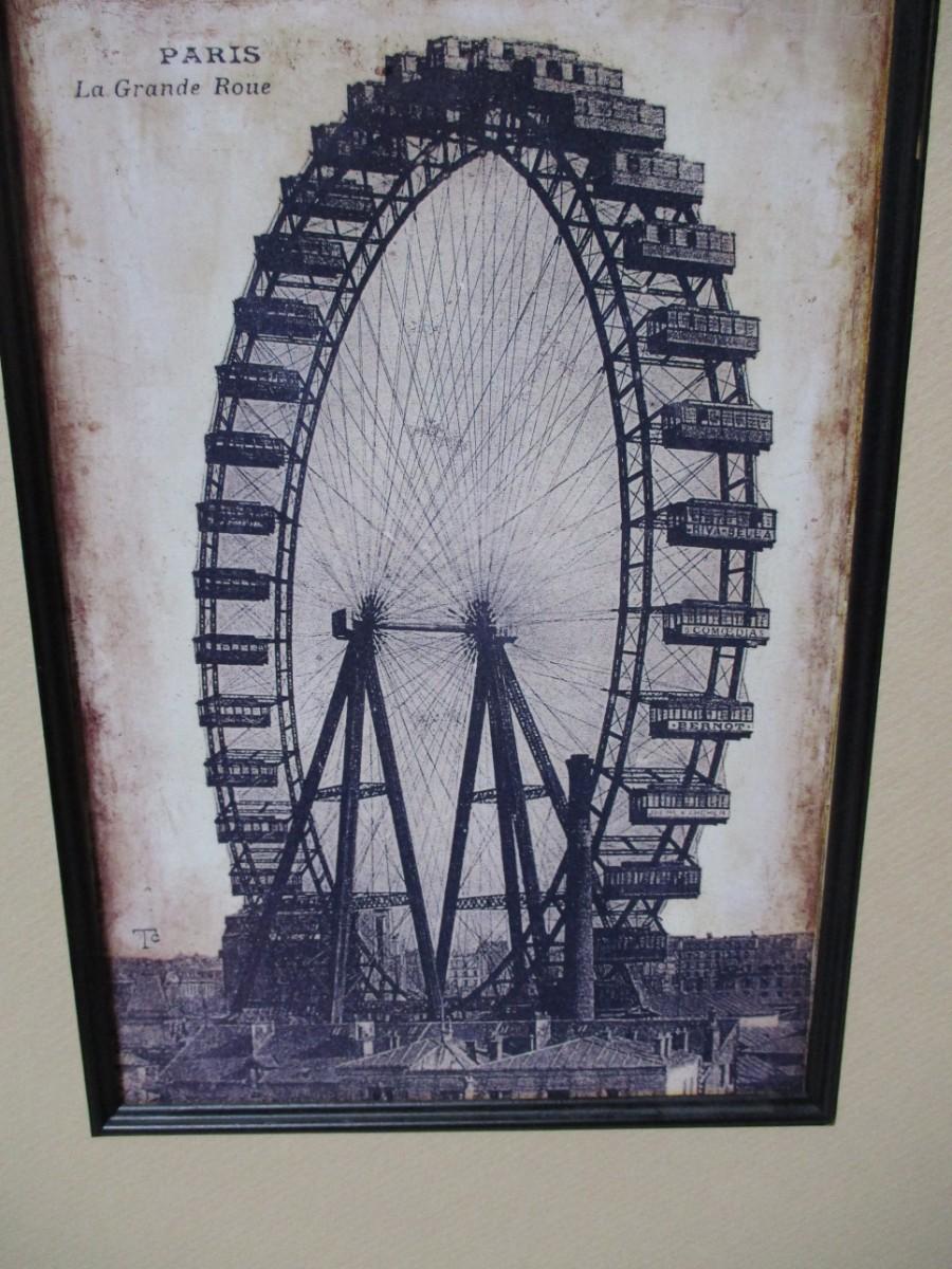 La Grande Roue by Tina Chaden Framed and Matted Litho Cafe Paris Ferris Wheel 17" x 27 1/4"