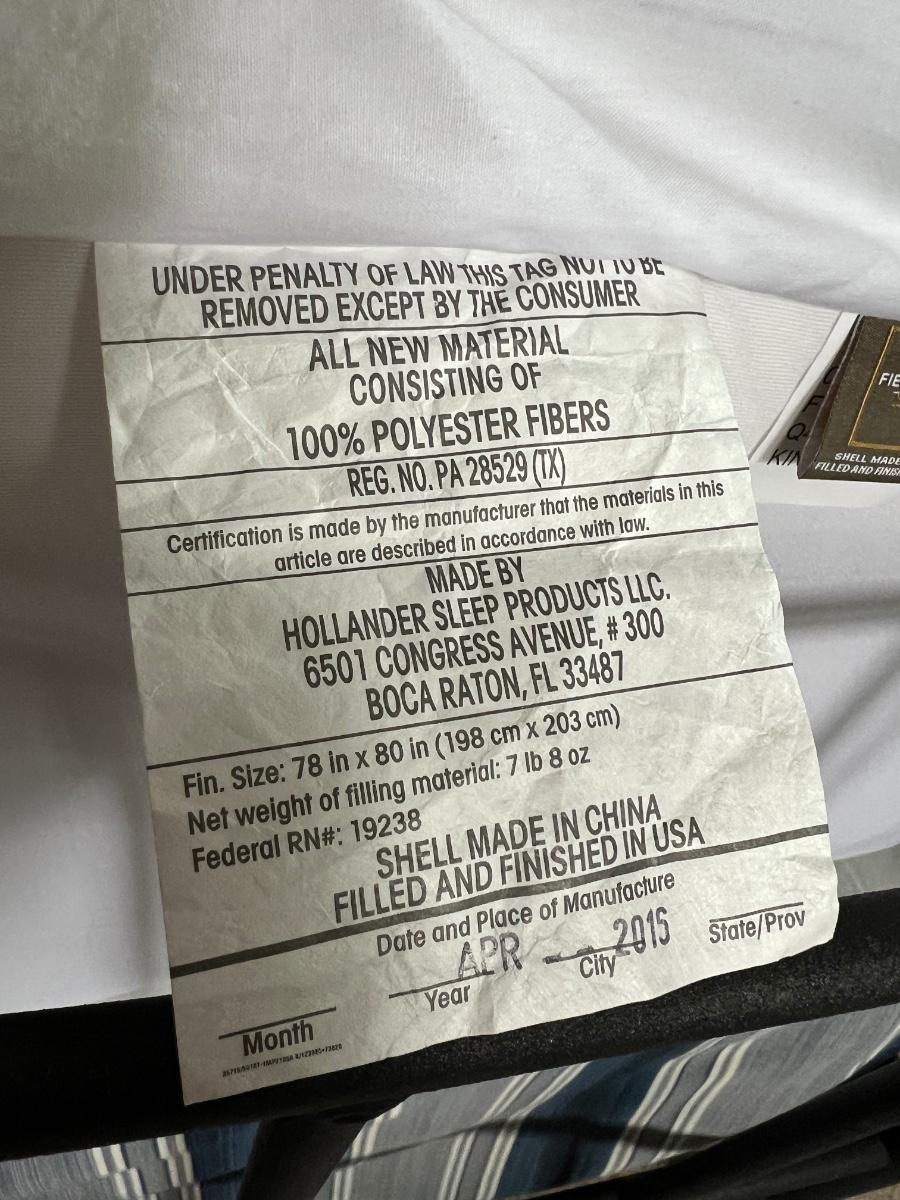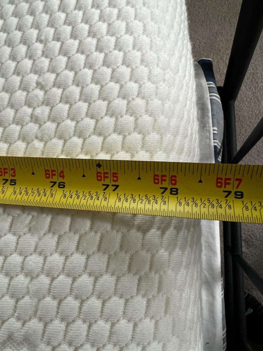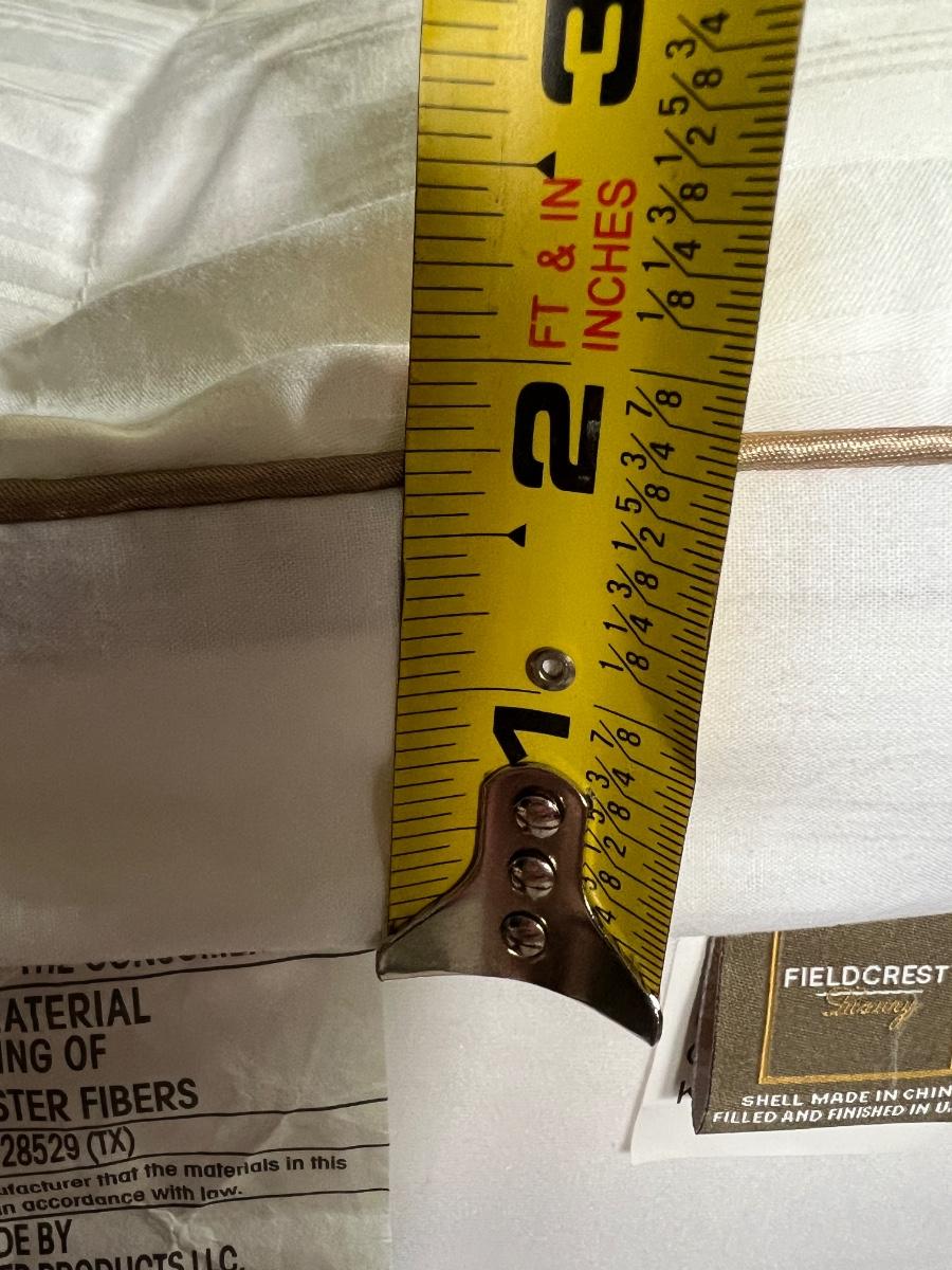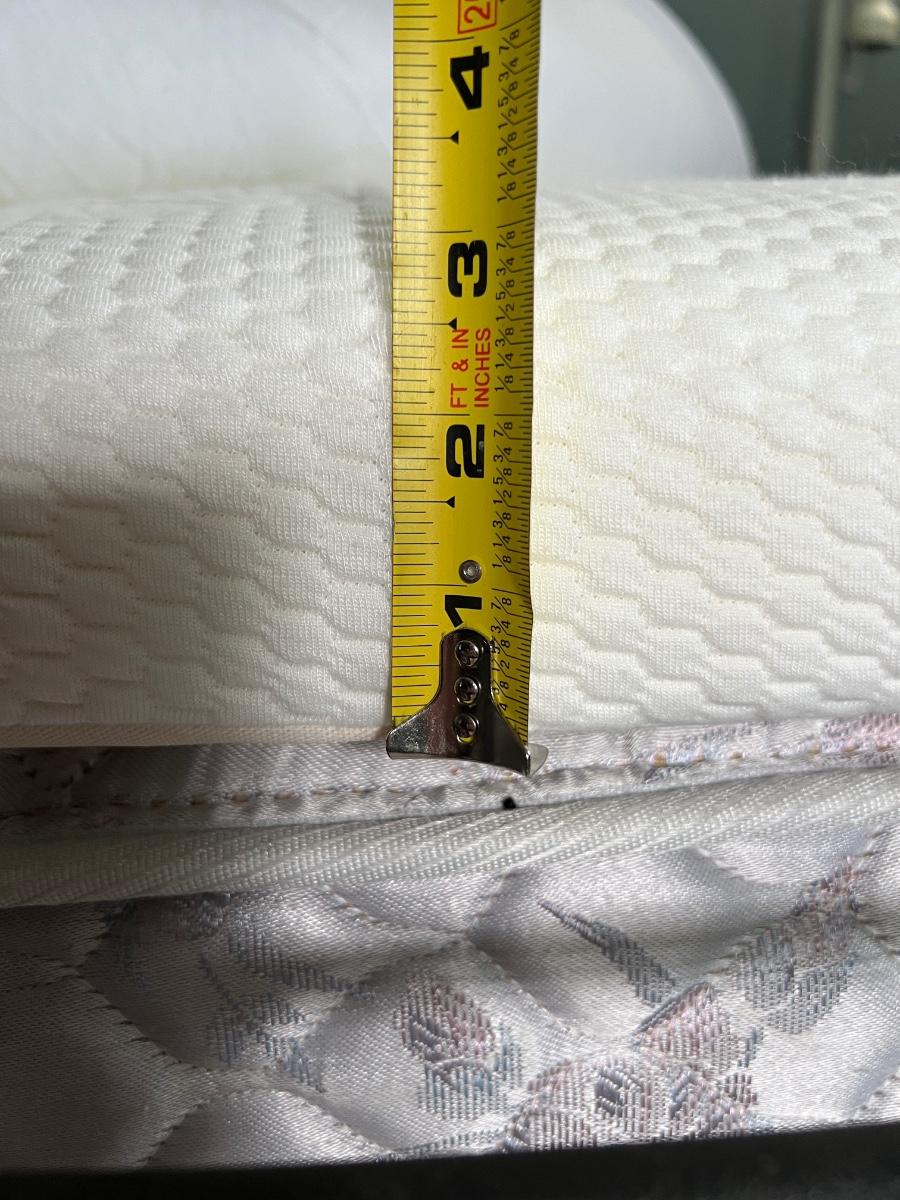 The Tempur-Pedic is 3" thick bed size King. The Fieldcrest mattress Pillow topper is 2" thick. Both are very clean and used in the guest bedroom.