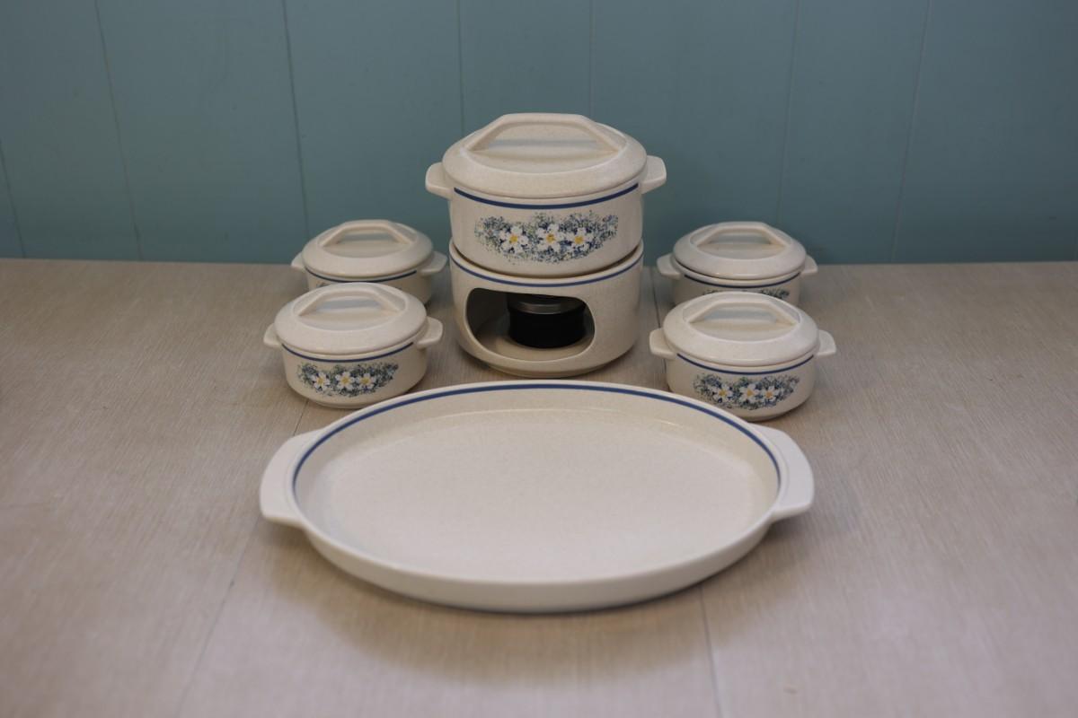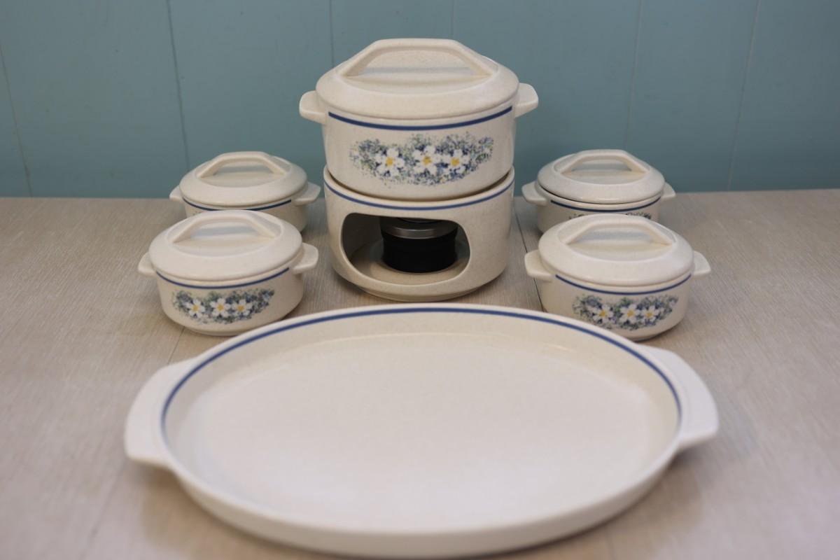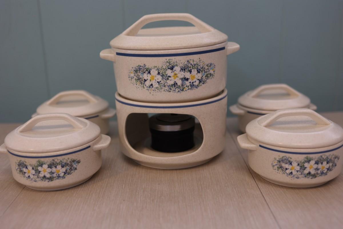 Temper-ware by Lenox Dewdrops Ceramic Fondue Warmer Set and Ovenware.