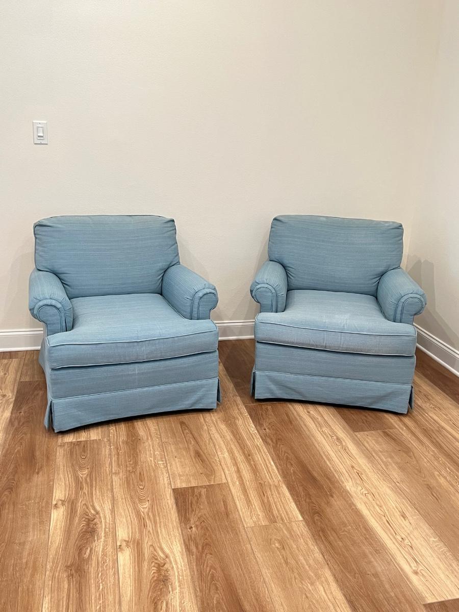 TEMPLE ~ Pair (2) ~ Vtg Blue Occasional Chairs