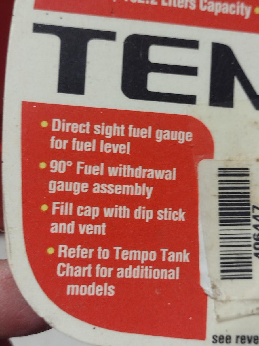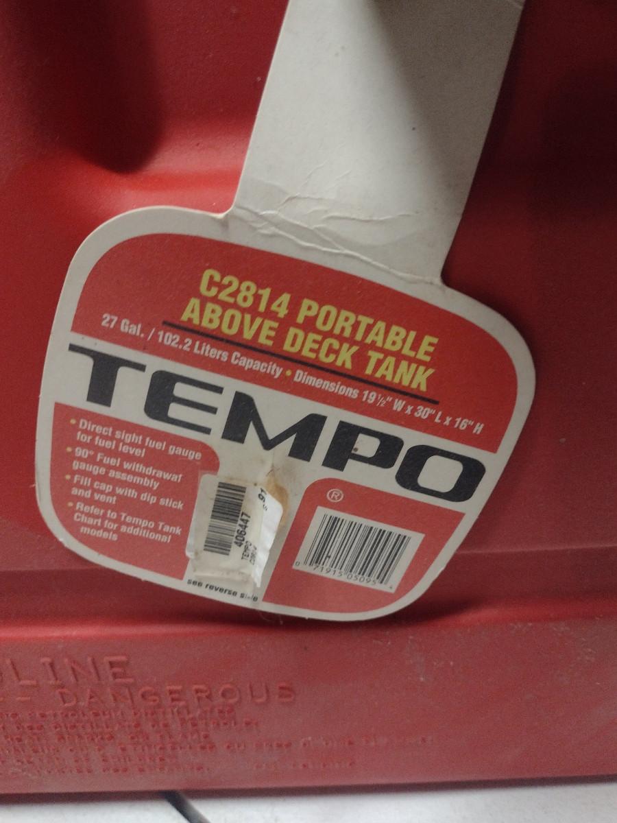 Tempo Portable Gasoline Above Deck Tank- 27 Gal Capacity
