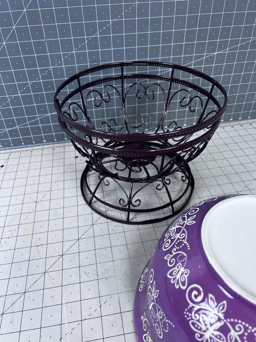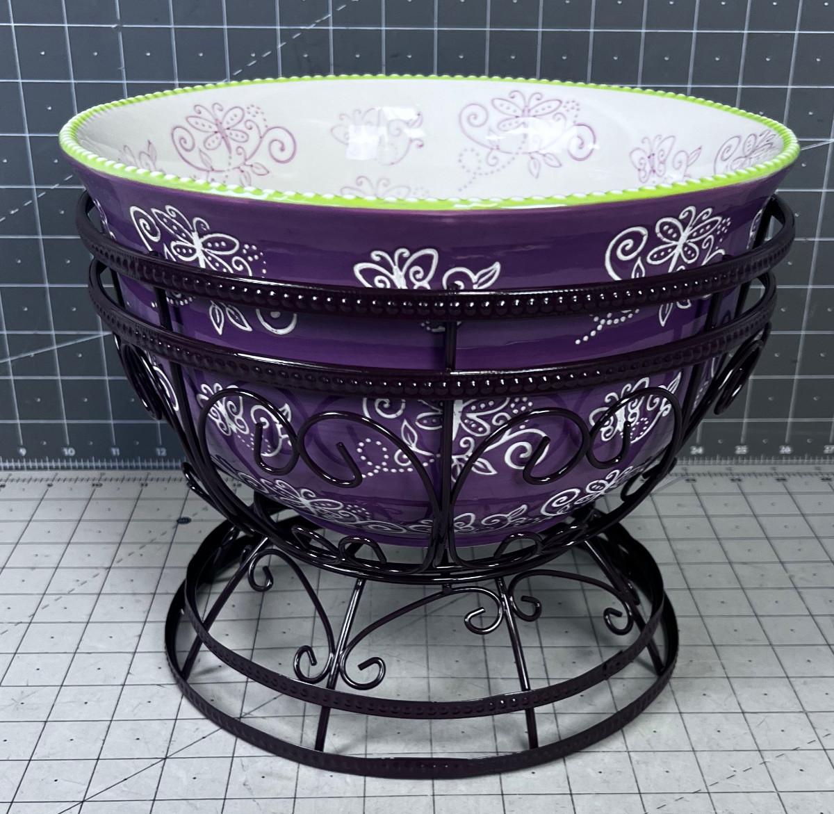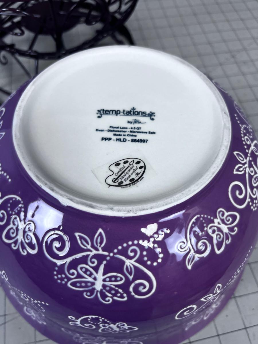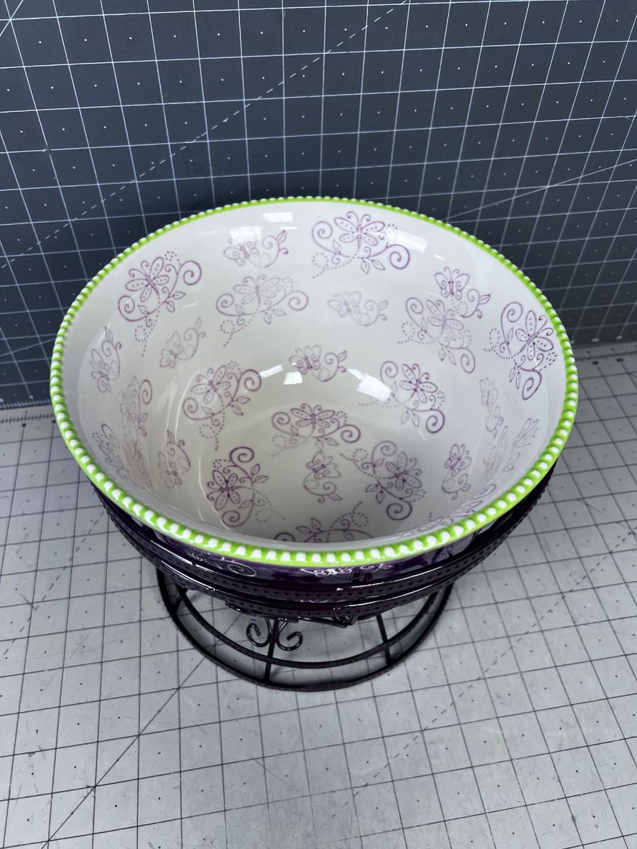 TEMPTATIONS 4 Quart Floral Lace Serving Bowls with Metal Stand
