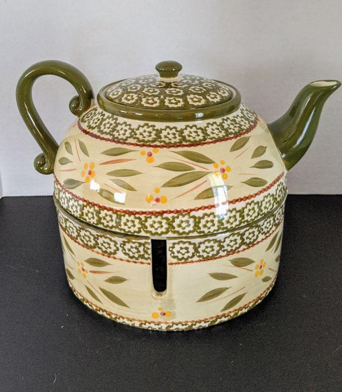 Temptations by Tara - Old World Green Teapot & Warmer Stand
