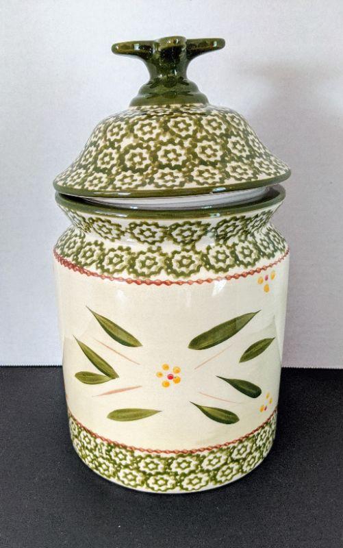 Lot #200 Temptations by Tara - Old World Green Cookie Jar and Lid