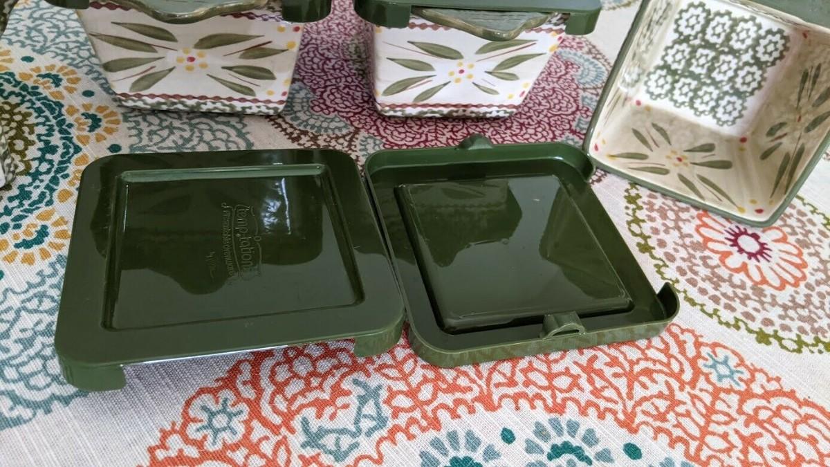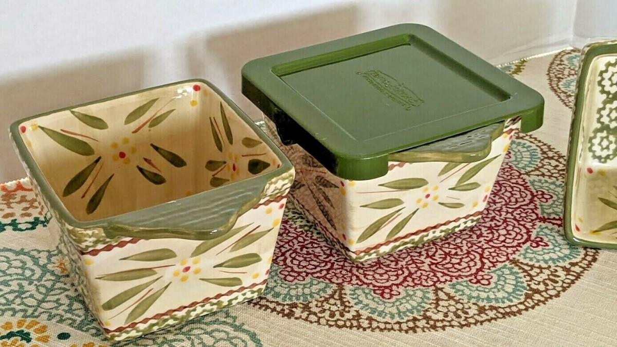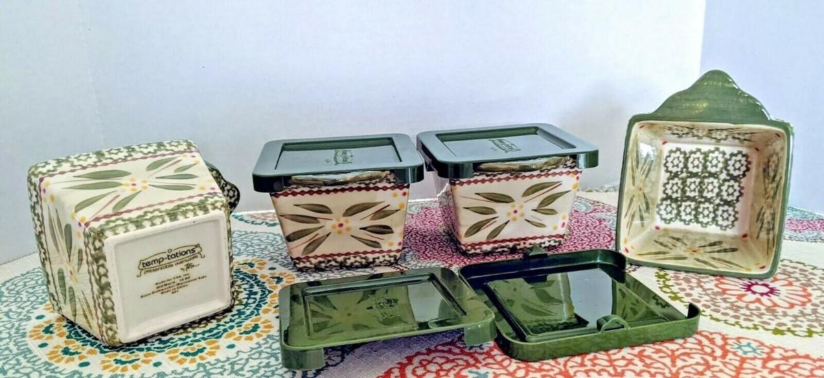 Temptations By Tara Old World Green 4 10 ounce Square Bowls/Ramekins with Lids