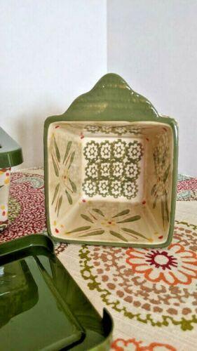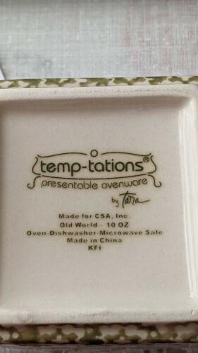 Temptations By Tara Old World Green 4 -10 ounce Square Bowls/Ramekins with Lids