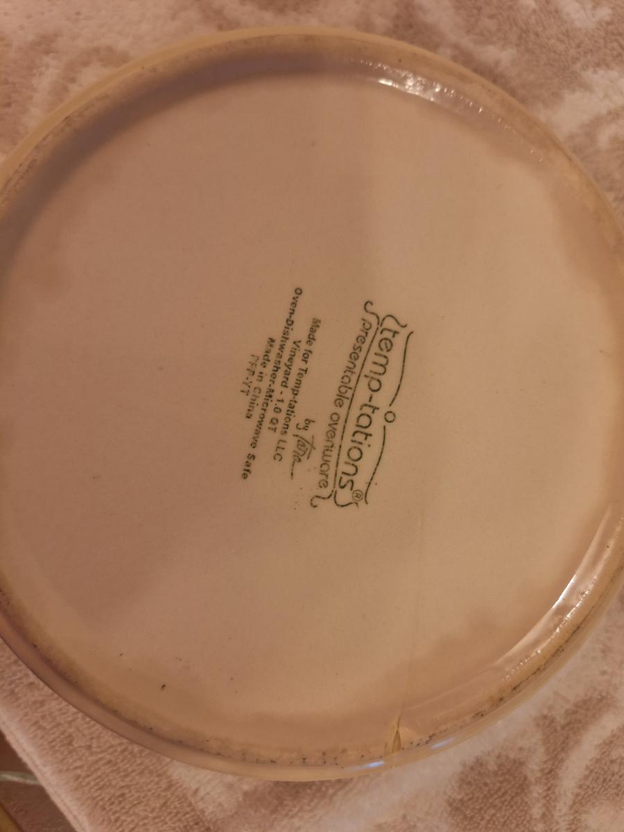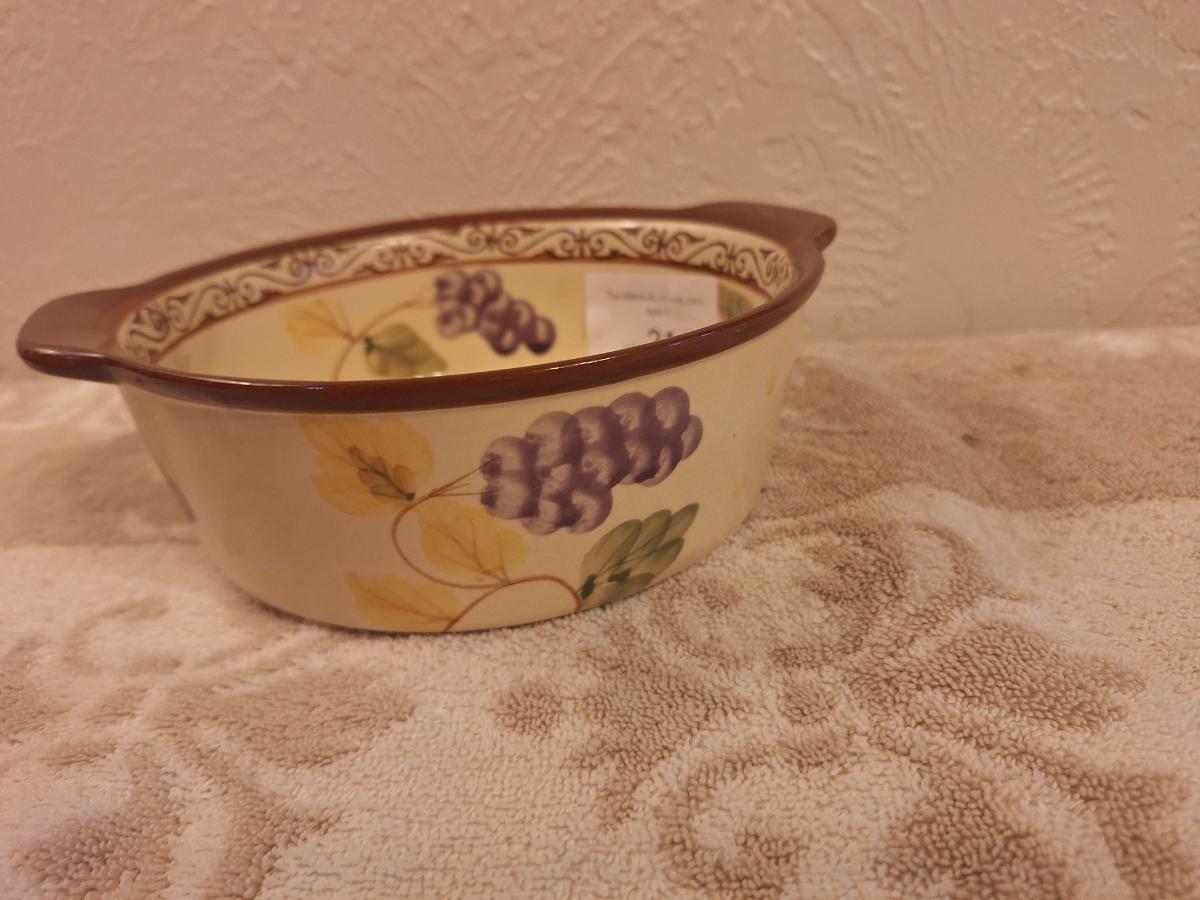 Temp-Tations by Tara Presentable Ovenware 1.5 Qt. Bowl in the "Vineyard" pattern.
