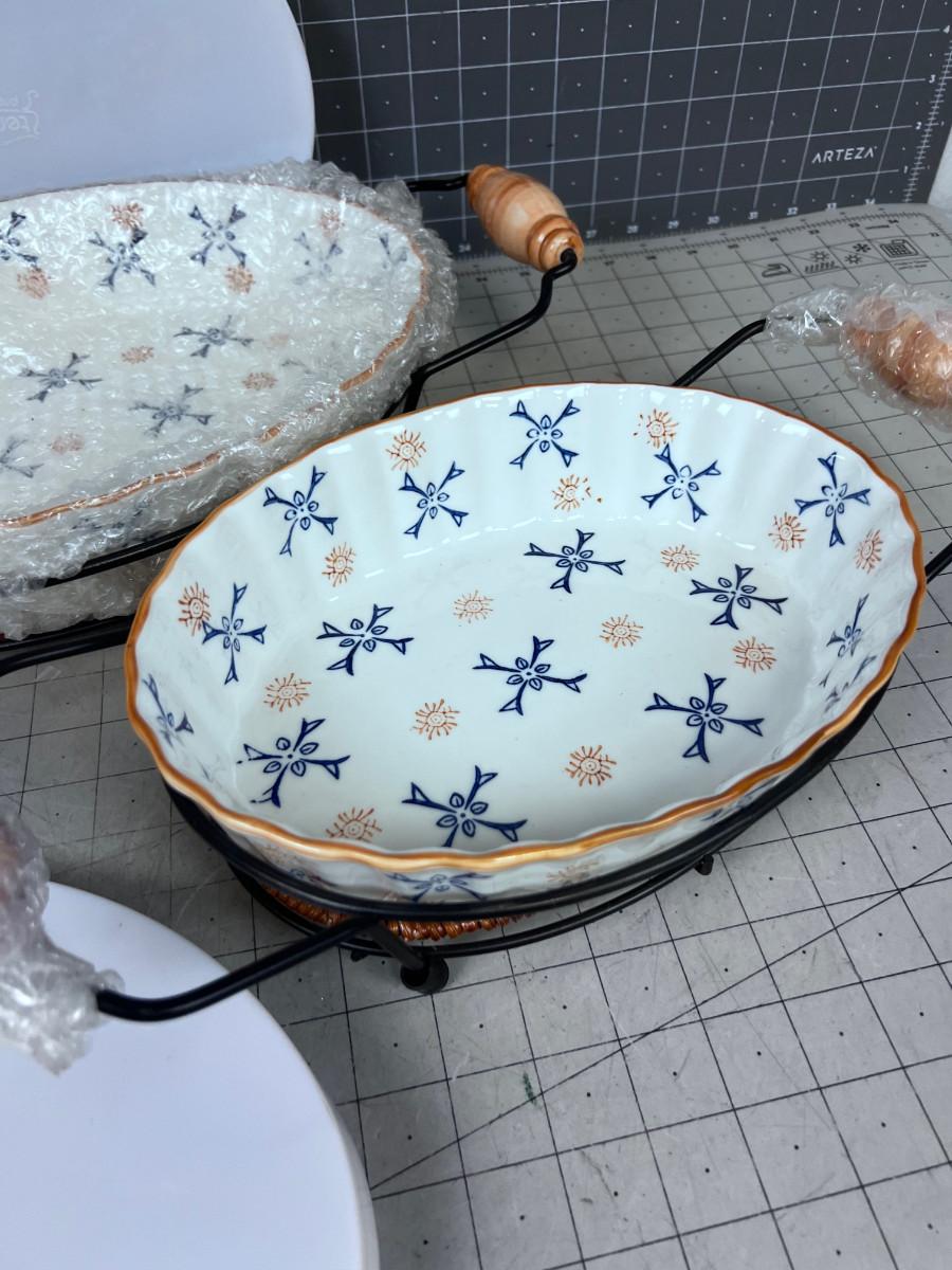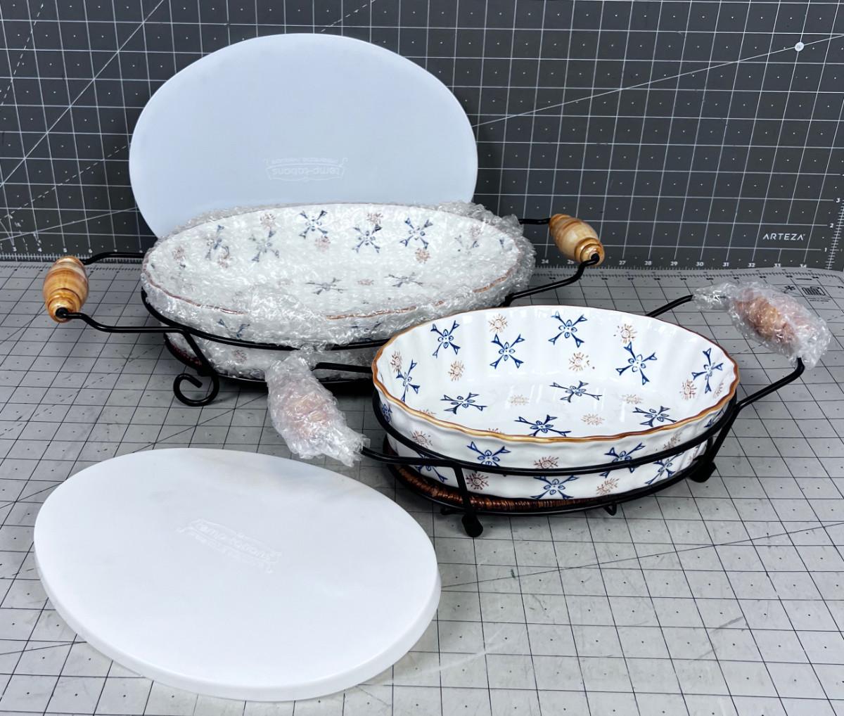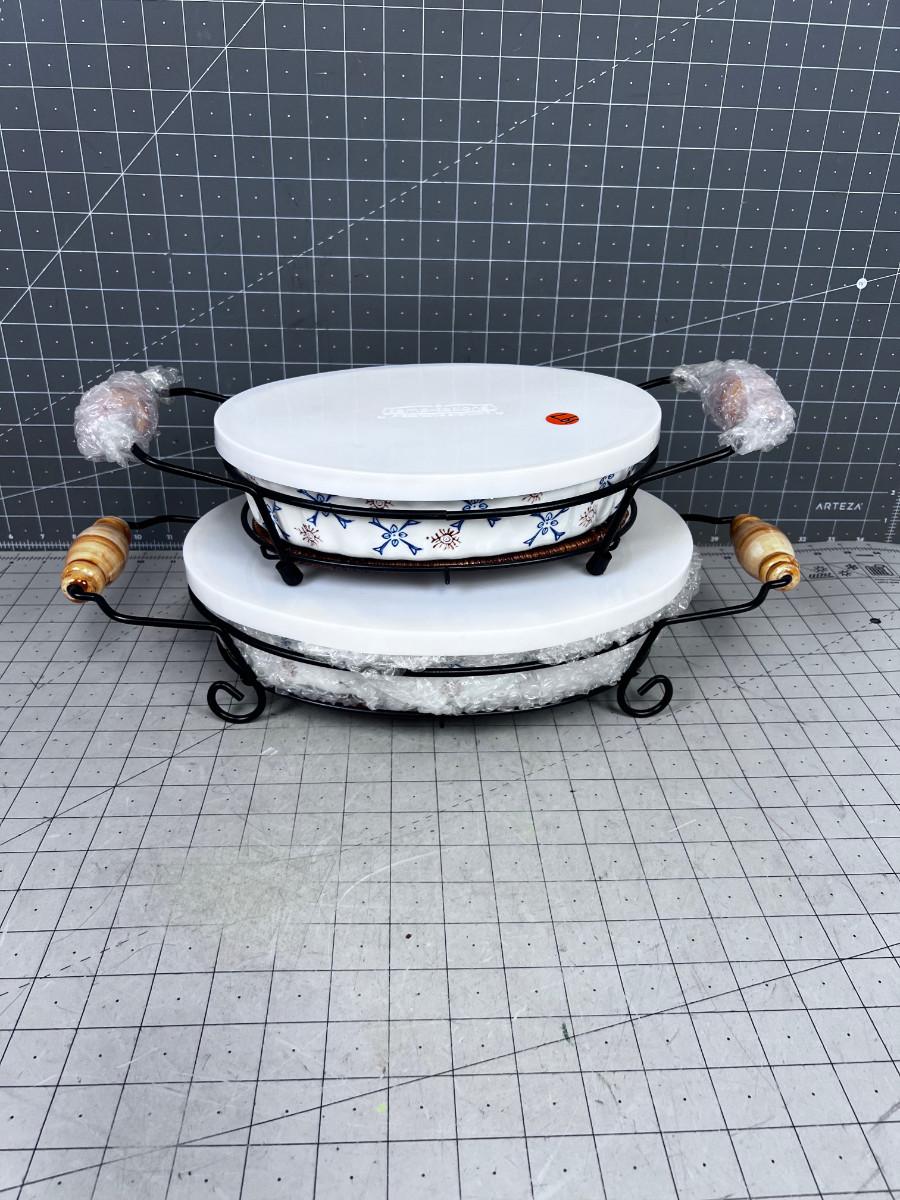 TEMPTATIONS NEW Presentable Ovenware - with Wire holders and Lids for the Ceramic Dish (2)