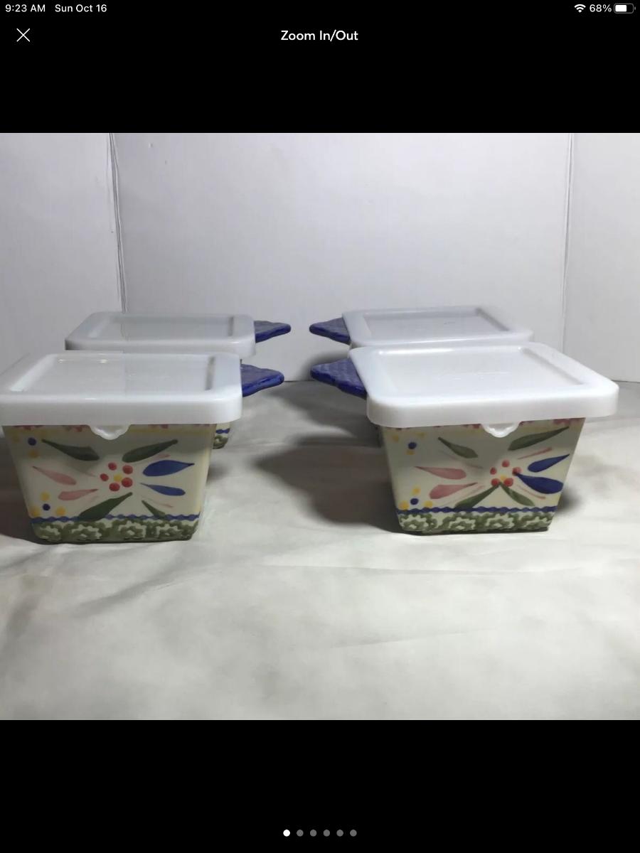 Set of 4; 10 oz with lids; Each ramekin is approximate 3.5" wide and 3" tall