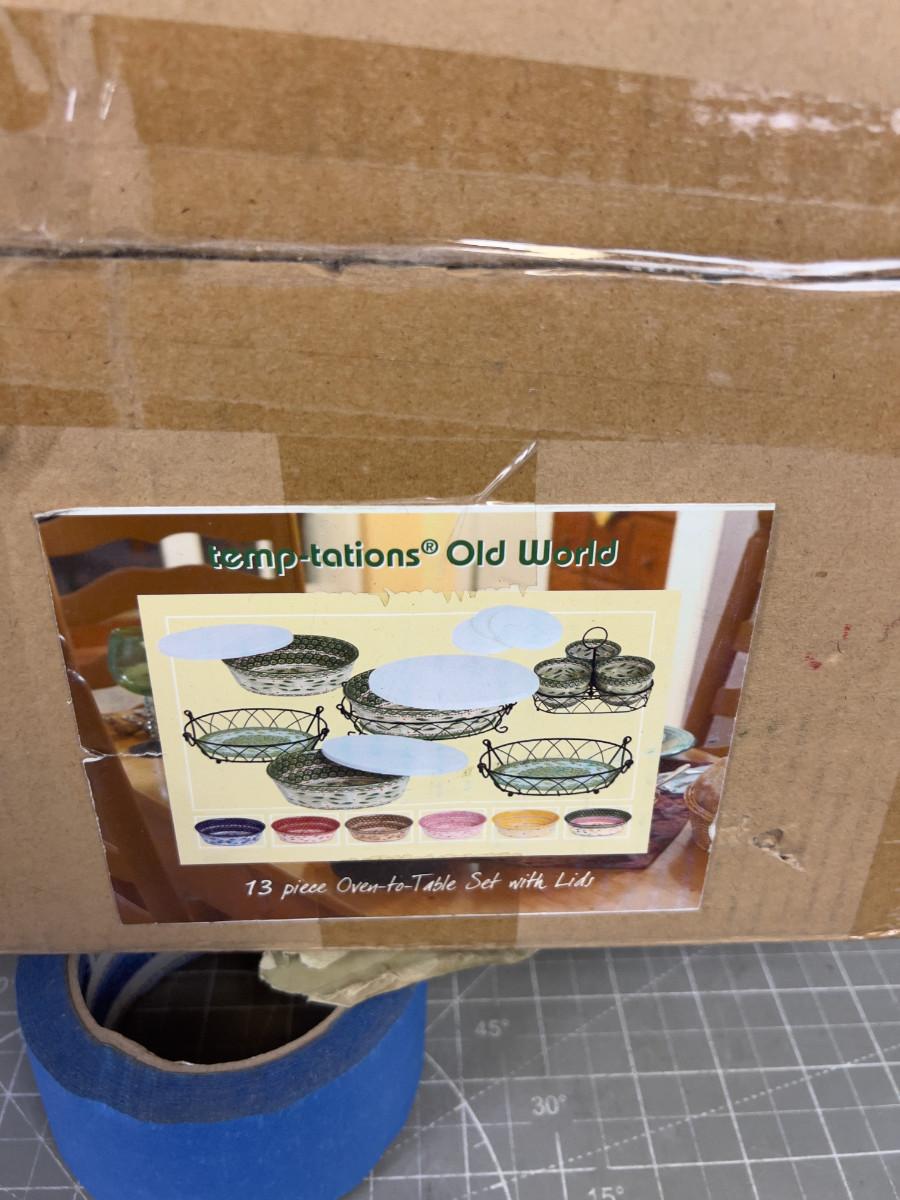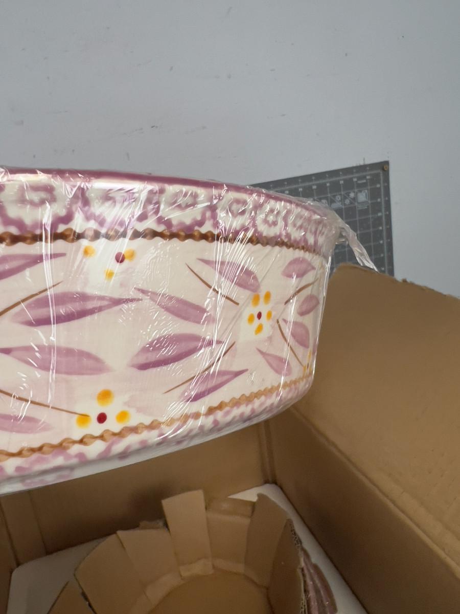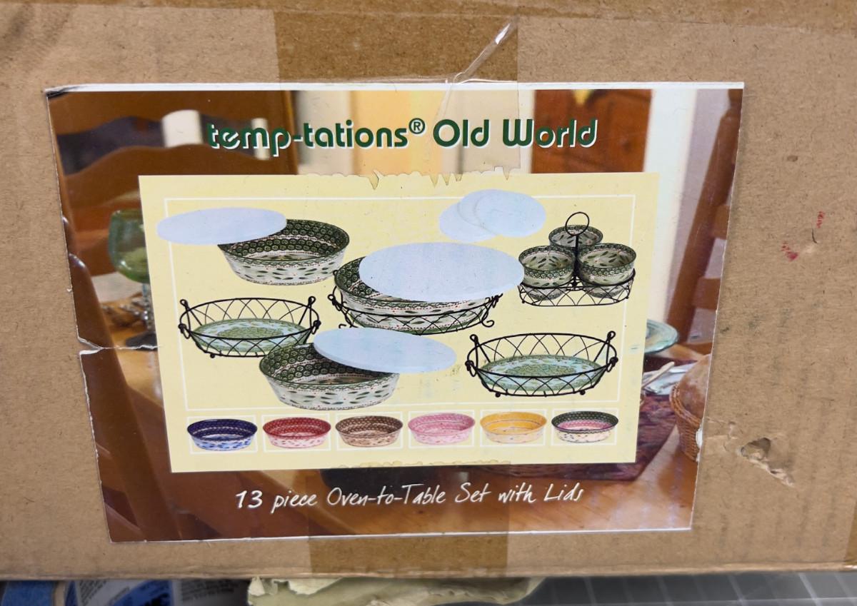 TEMPTATIONS OLD WORLD NEW 13 Piece Oven to Table Set with LIDS!!! PURPLE Foral Pattern NICE