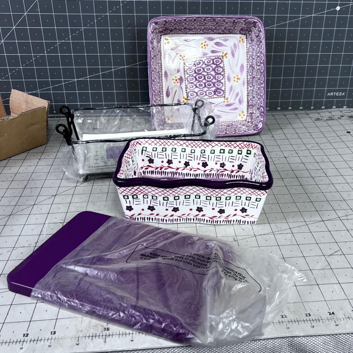 Temptations Presentable Ovenware. Square Baking Dish and Rectangle one with Wire Rack & Lid