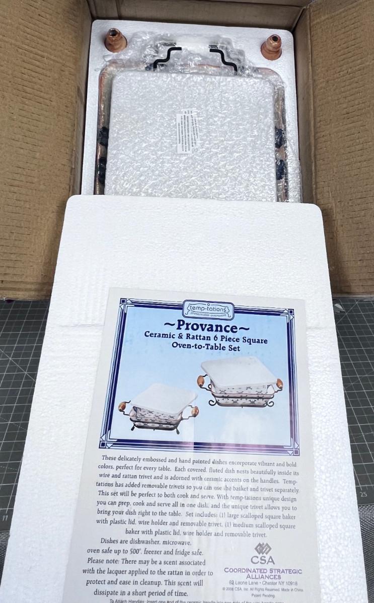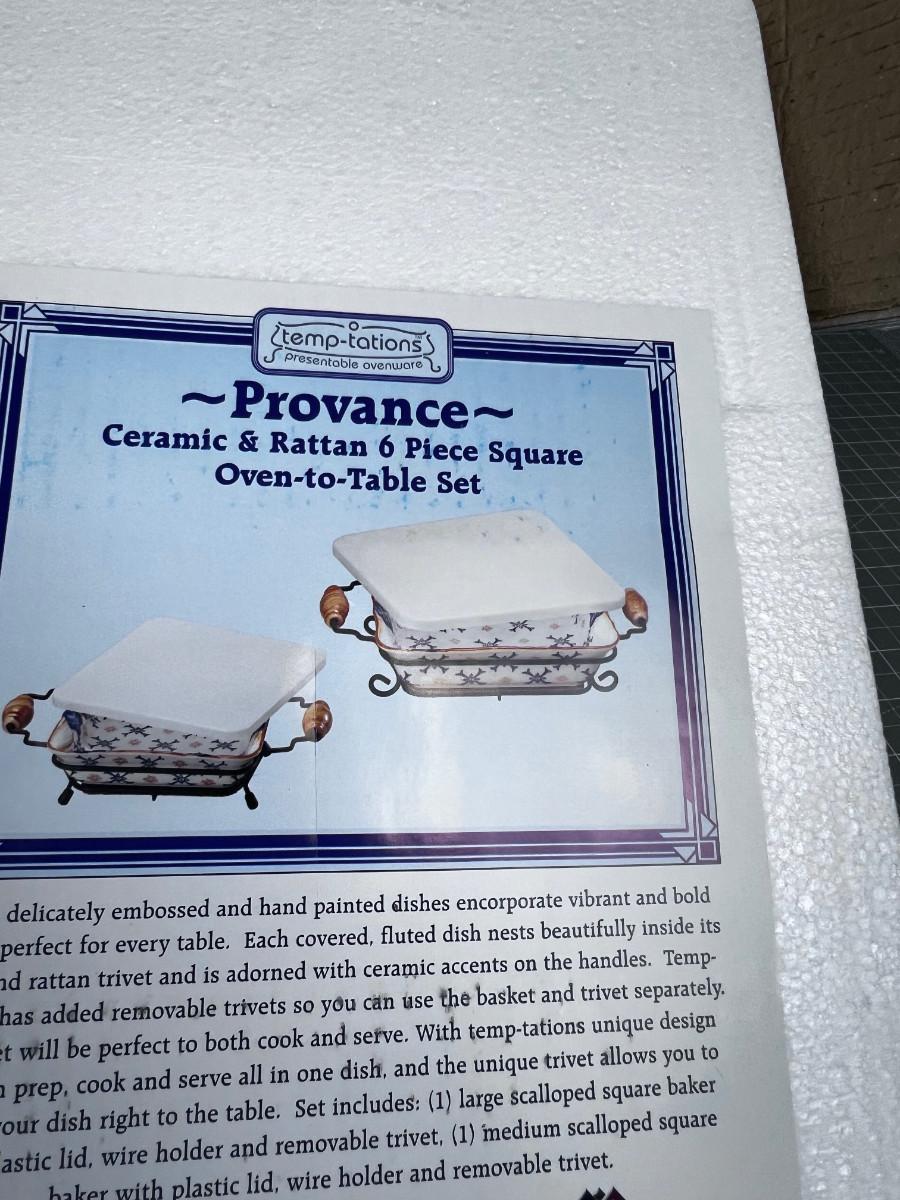 TEMPTATIONS: Provance Ceramic and Rattan  6 -piece Set of Oven to Table Serving set