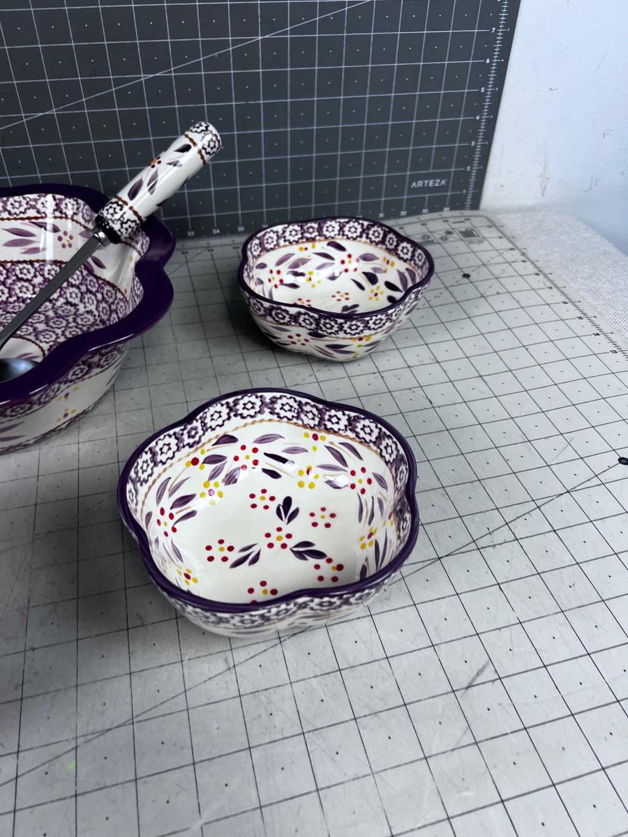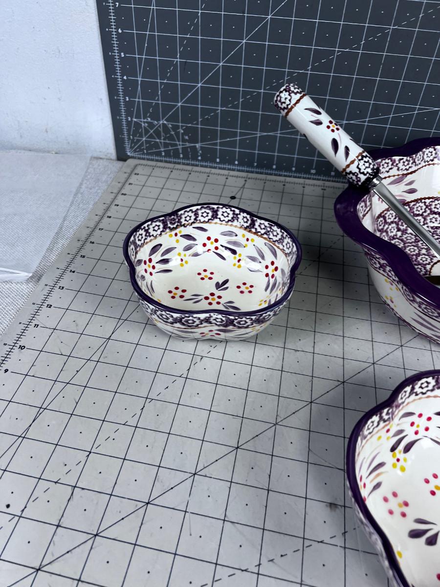 GOOD NEW CONDITION. One bowl does have a small chip. Still new.